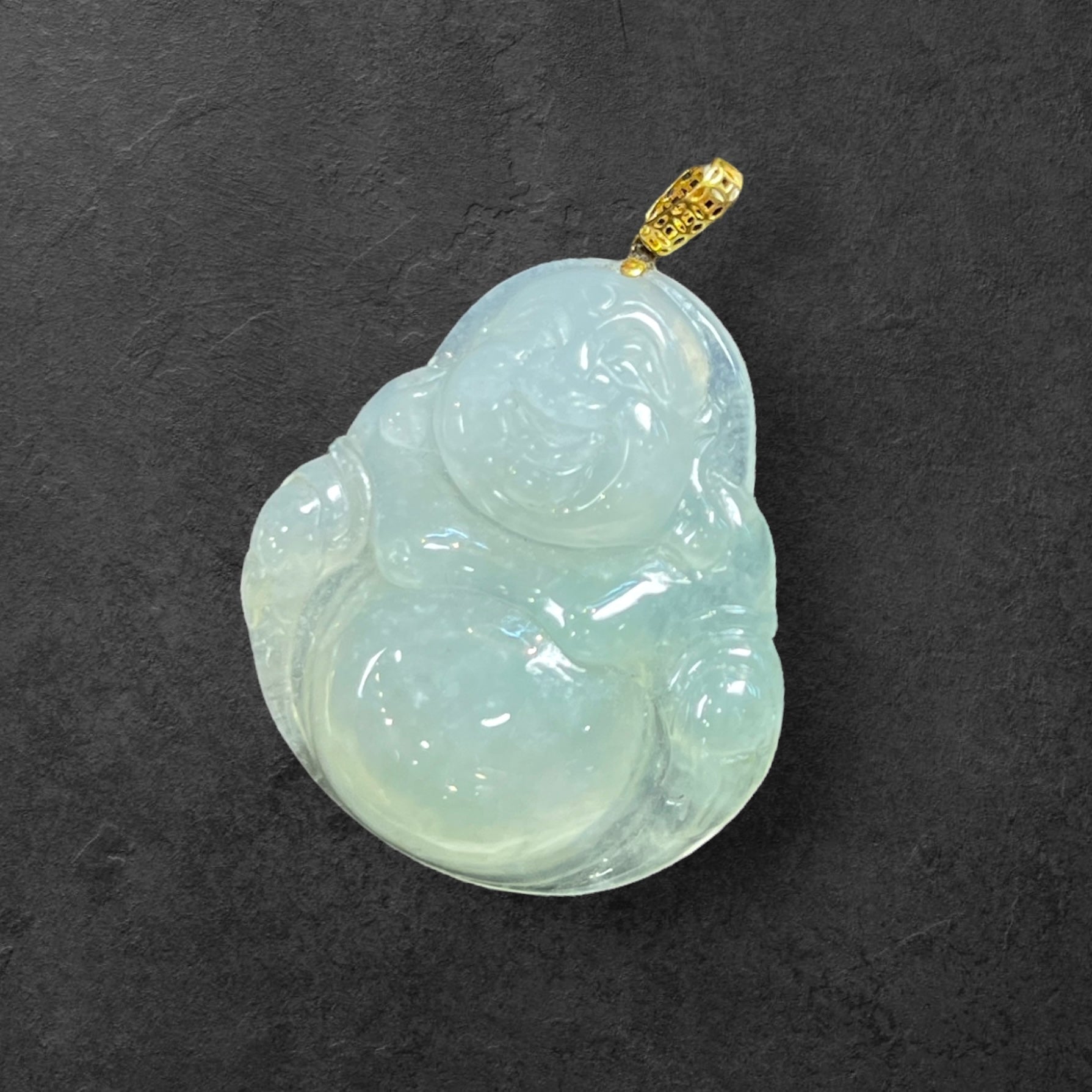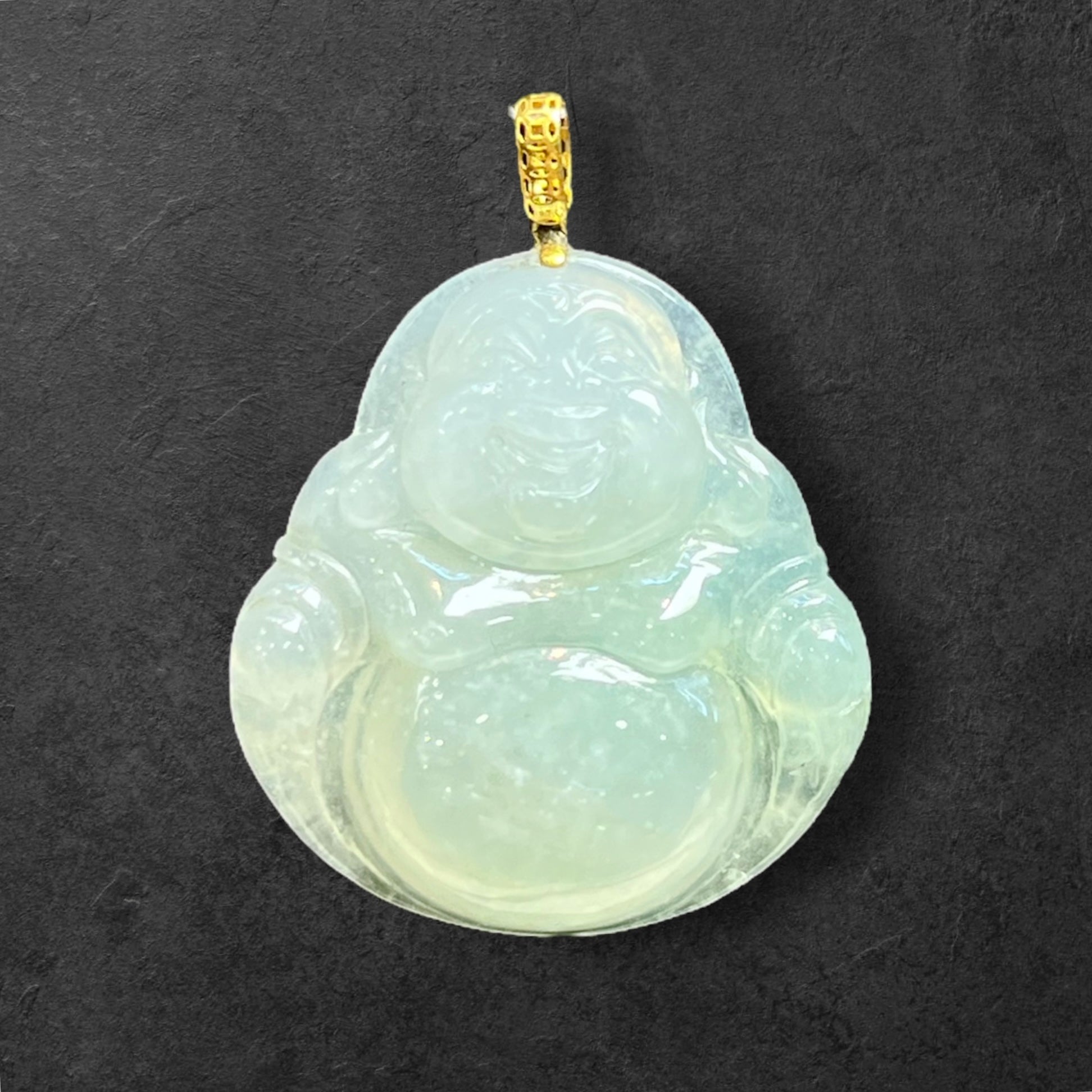 18K黃金冰種笑佛吊墜