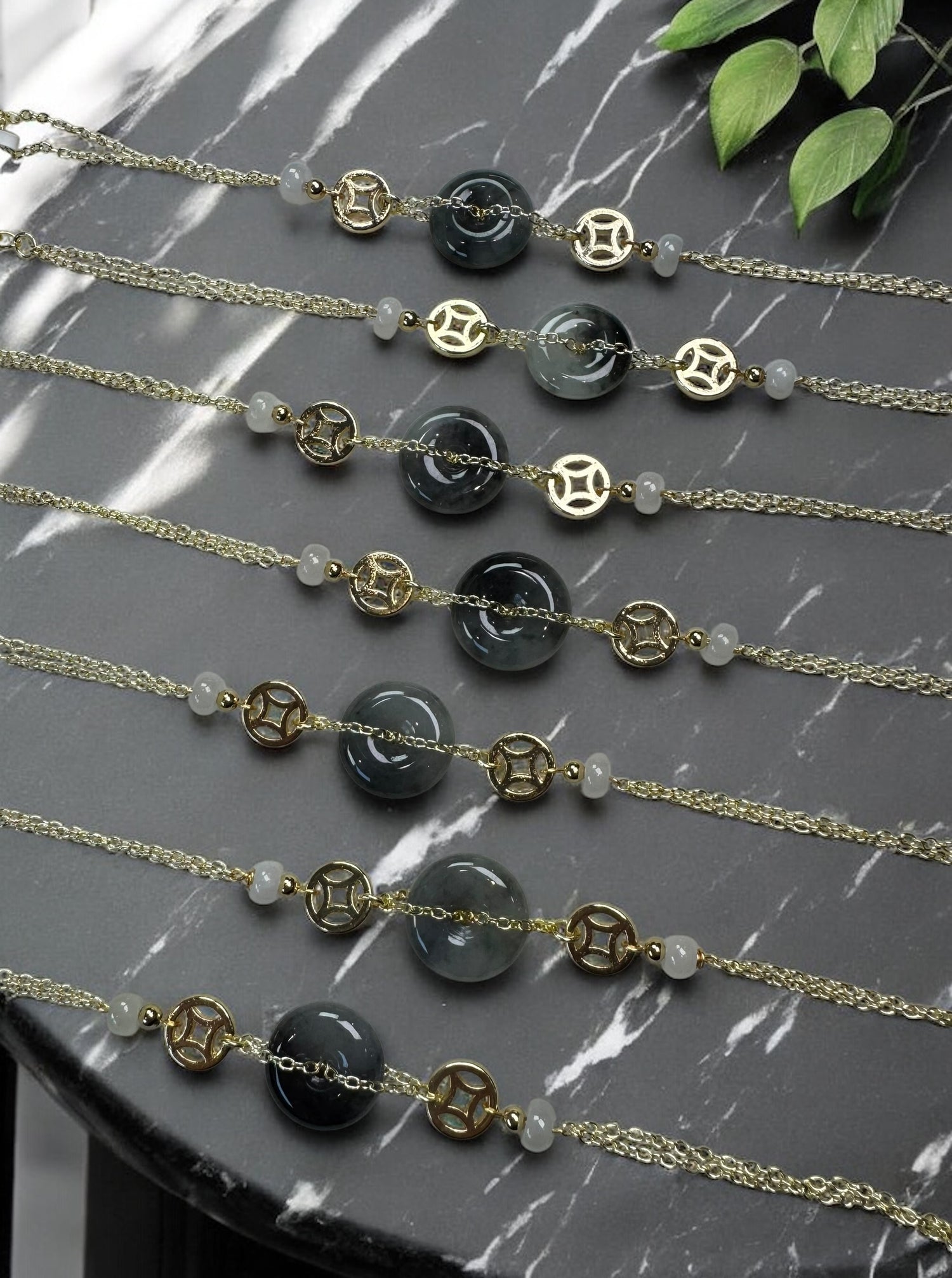 中間打孔的圓形翡翠,寓意萬事平安,據信為佩戴者僻邪招福