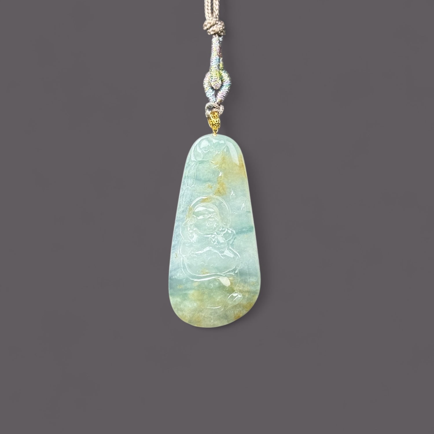 雕刻成佛公形象的翡翠象徵佛公寬容、樂觀的心境,據說能讓佩戴者福氣和喜樂