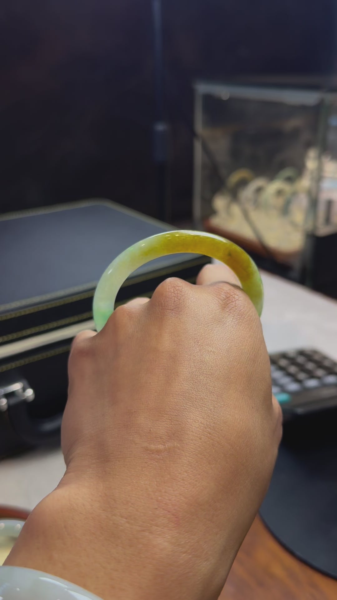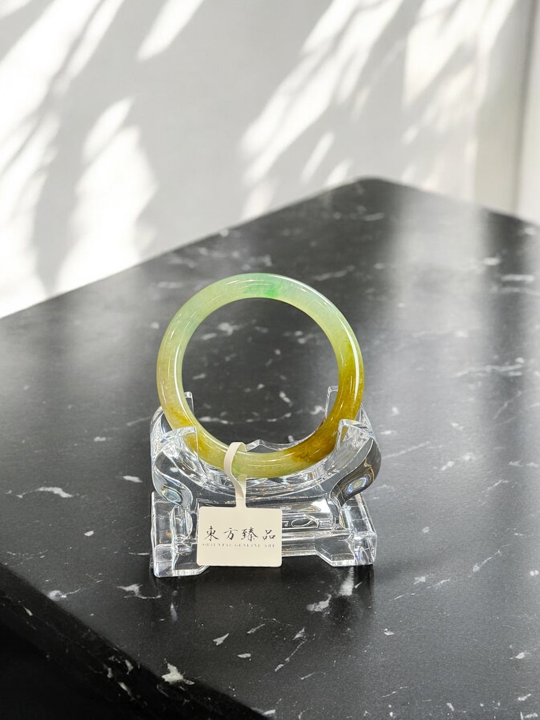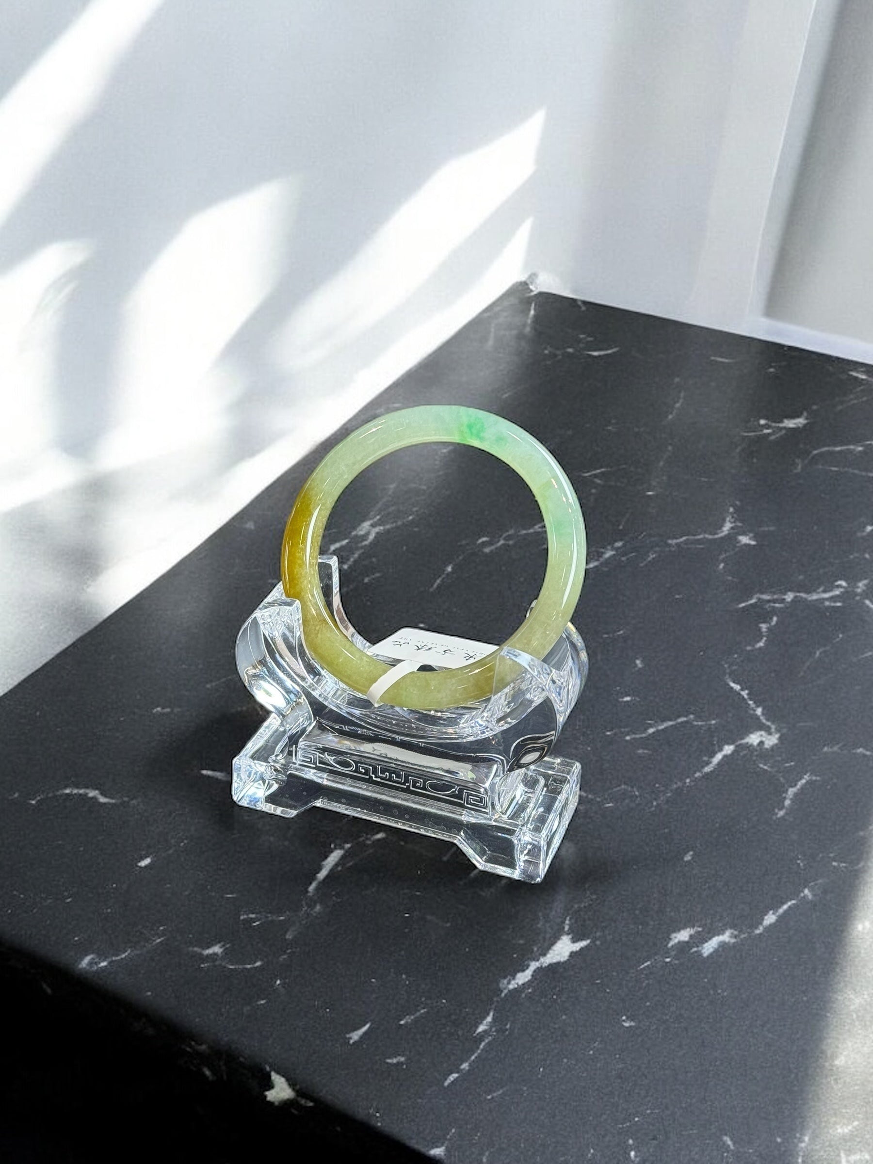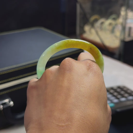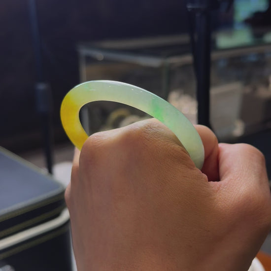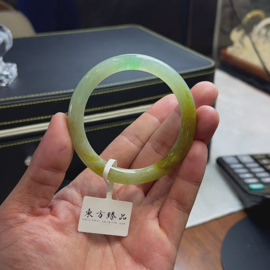 半山水黃翡飄陽綠圓條手鐲