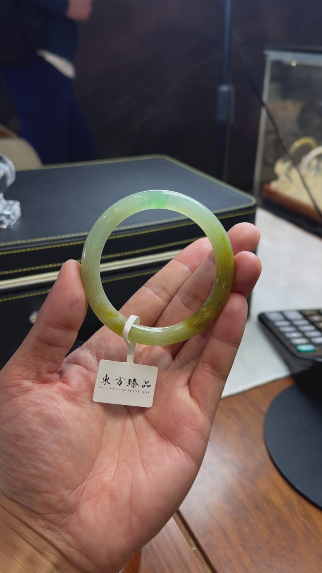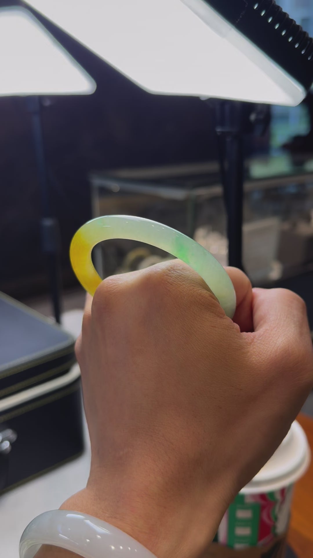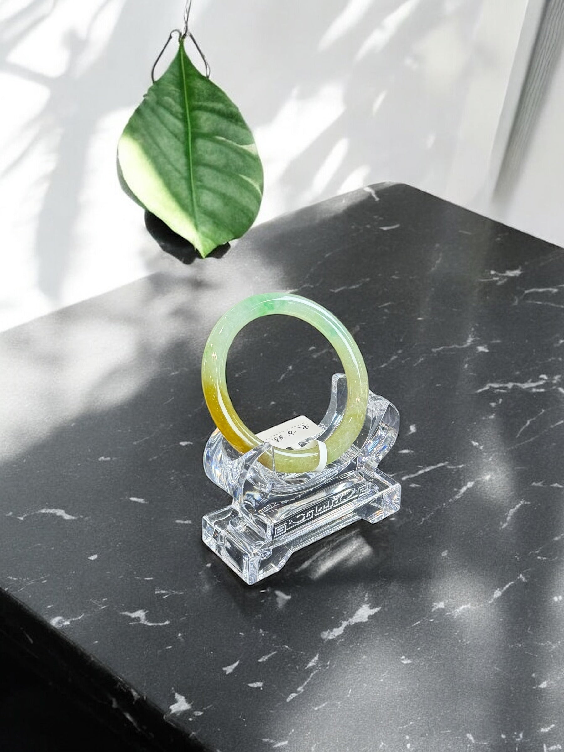 半山水黃翡飄陽綠圓條手鐲