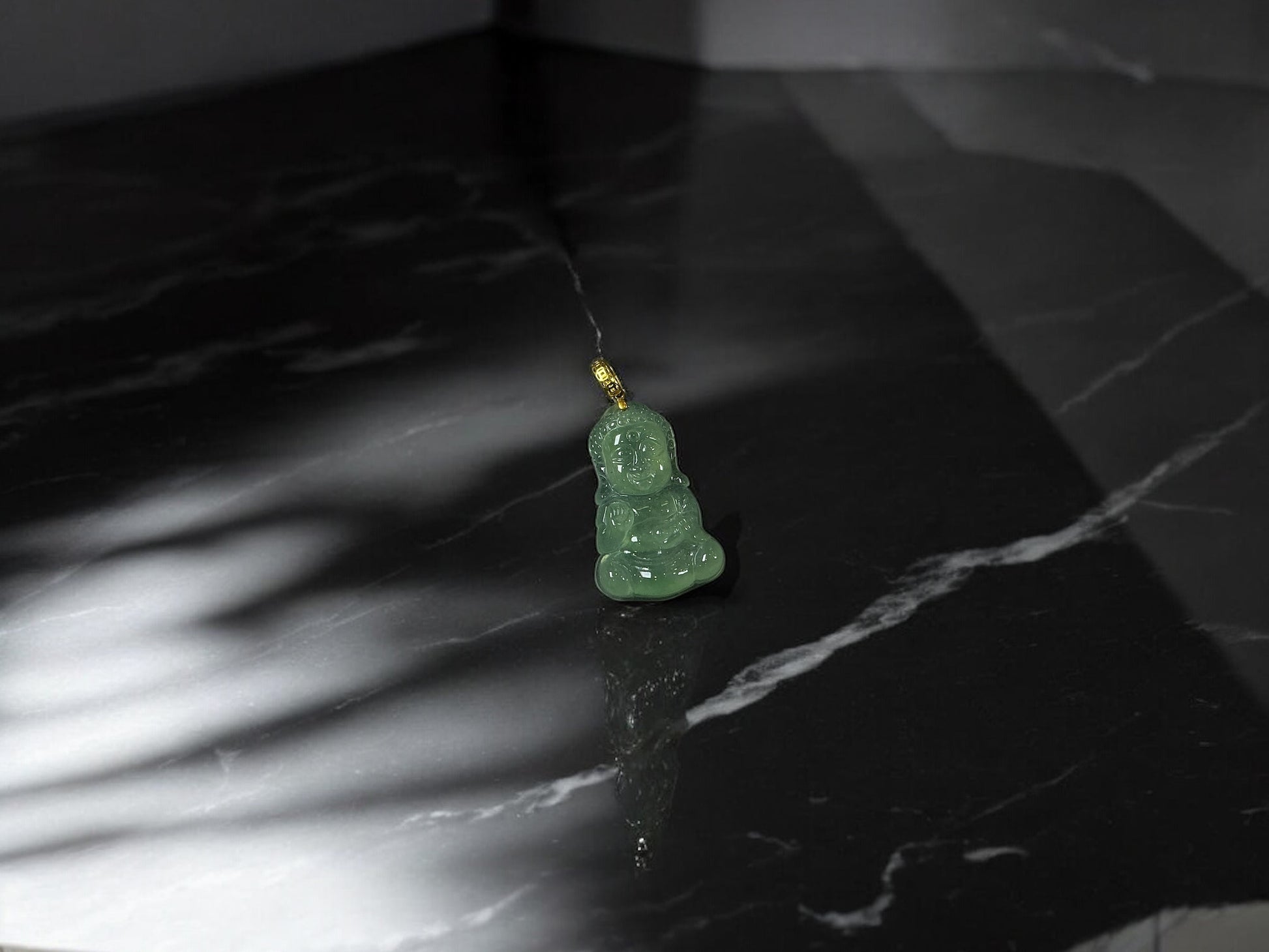 天然緬甸翡翠冰綠Q版釋迦吊墜