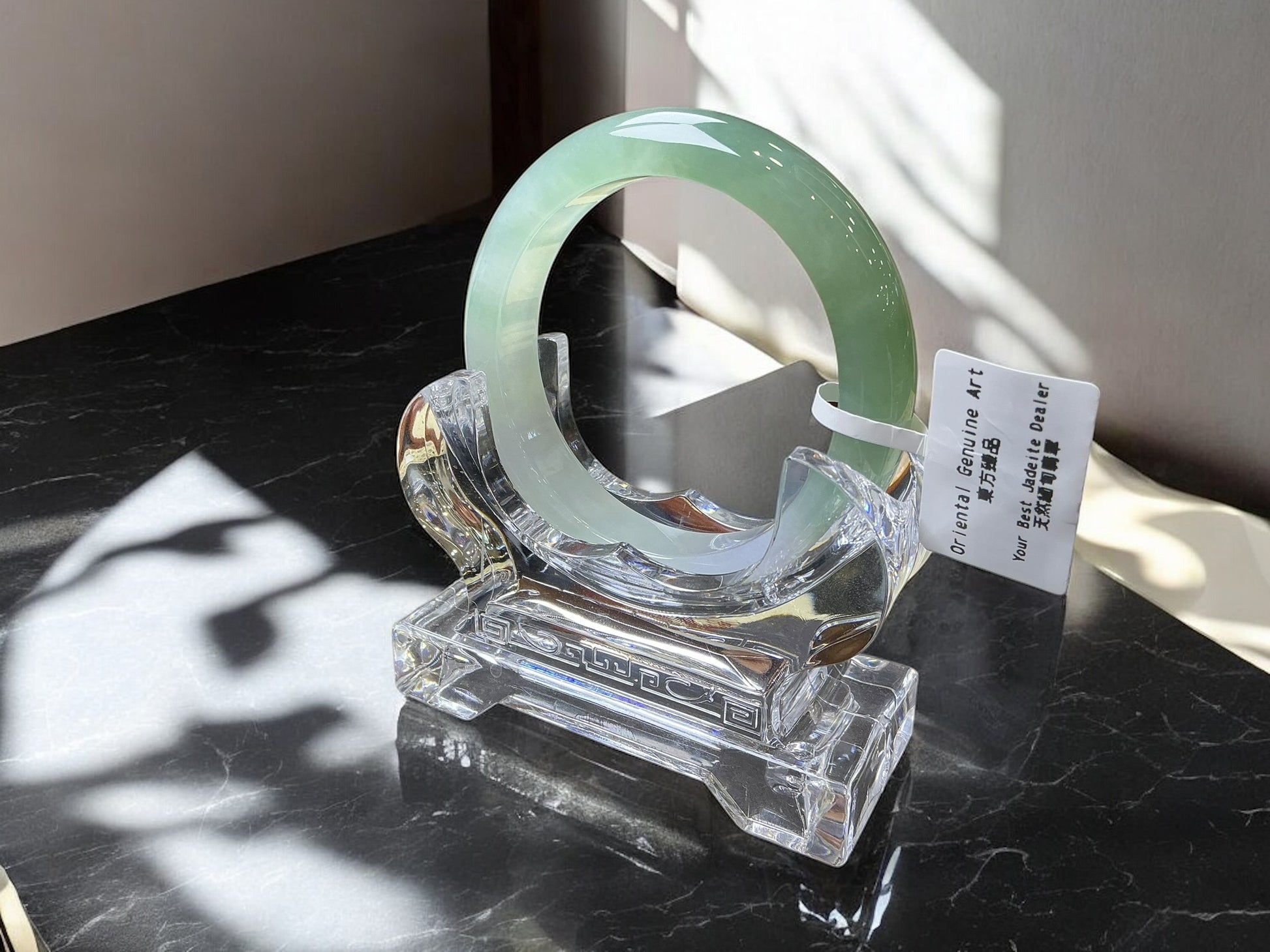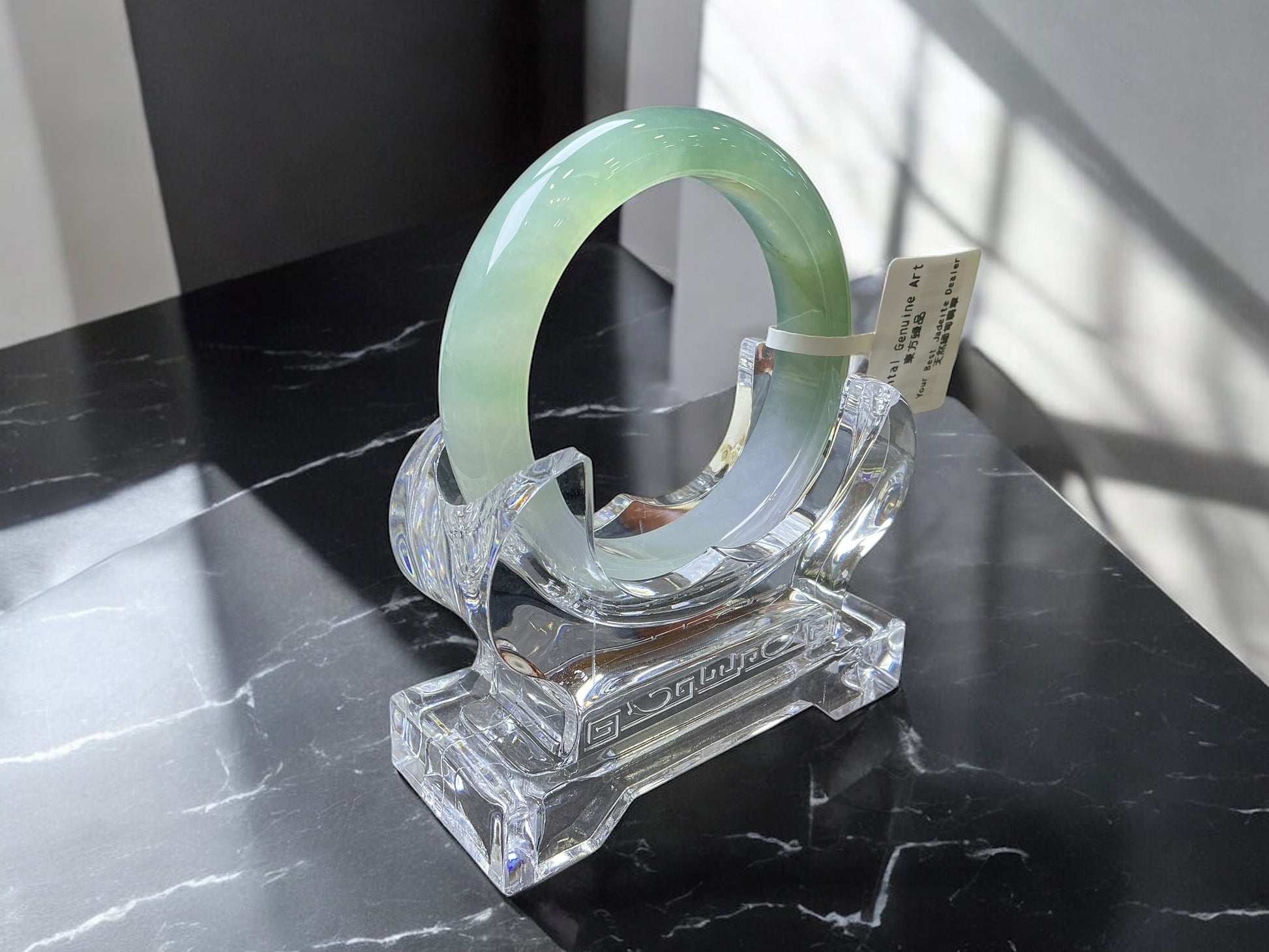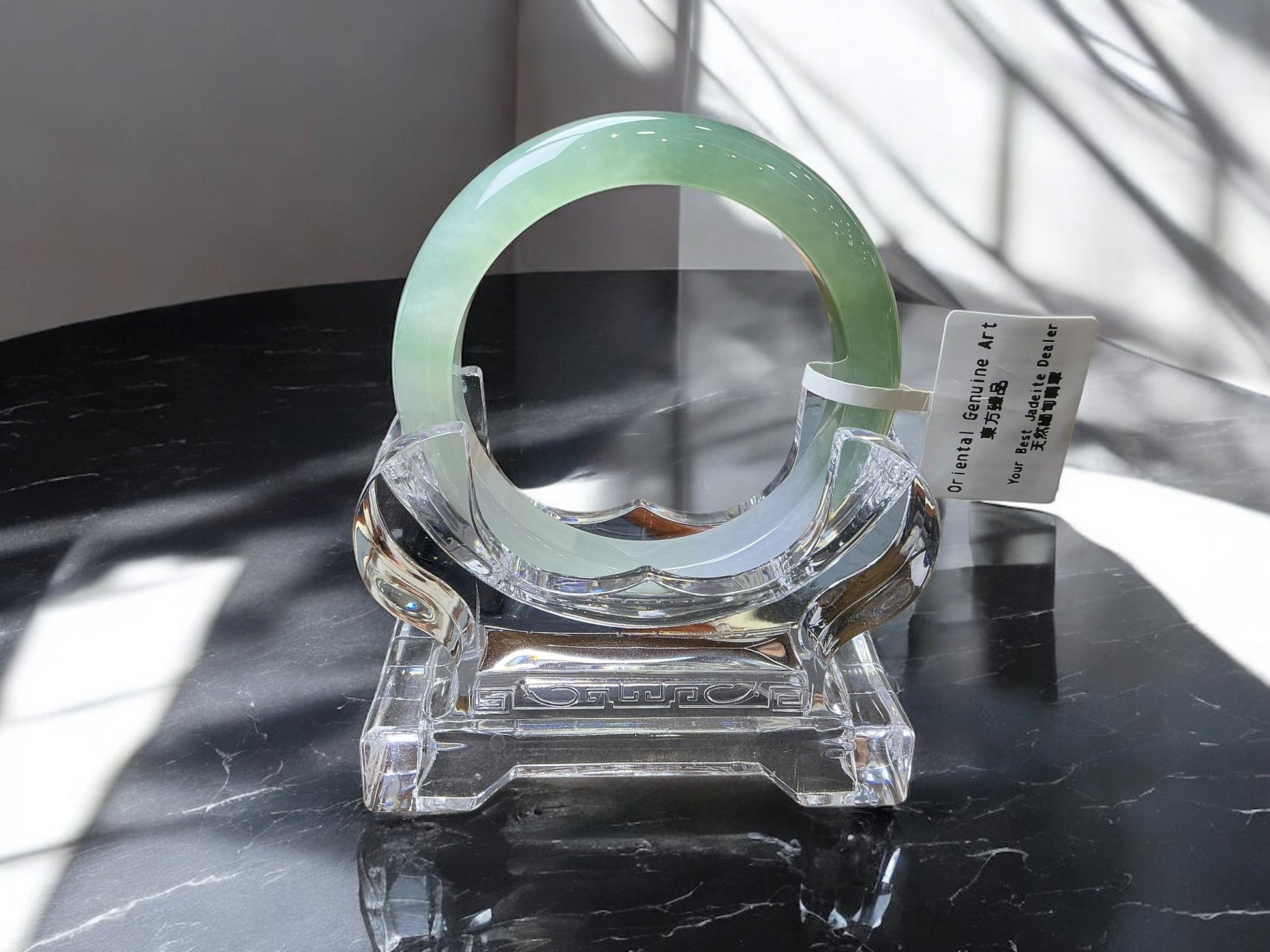 天然緬甸翡翠半山水正圈手鐲(圈口56)