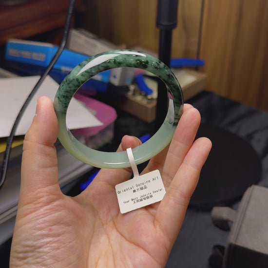 天然緬甸翡翠半山水老藍飄花正圈手鐲(圈口63)