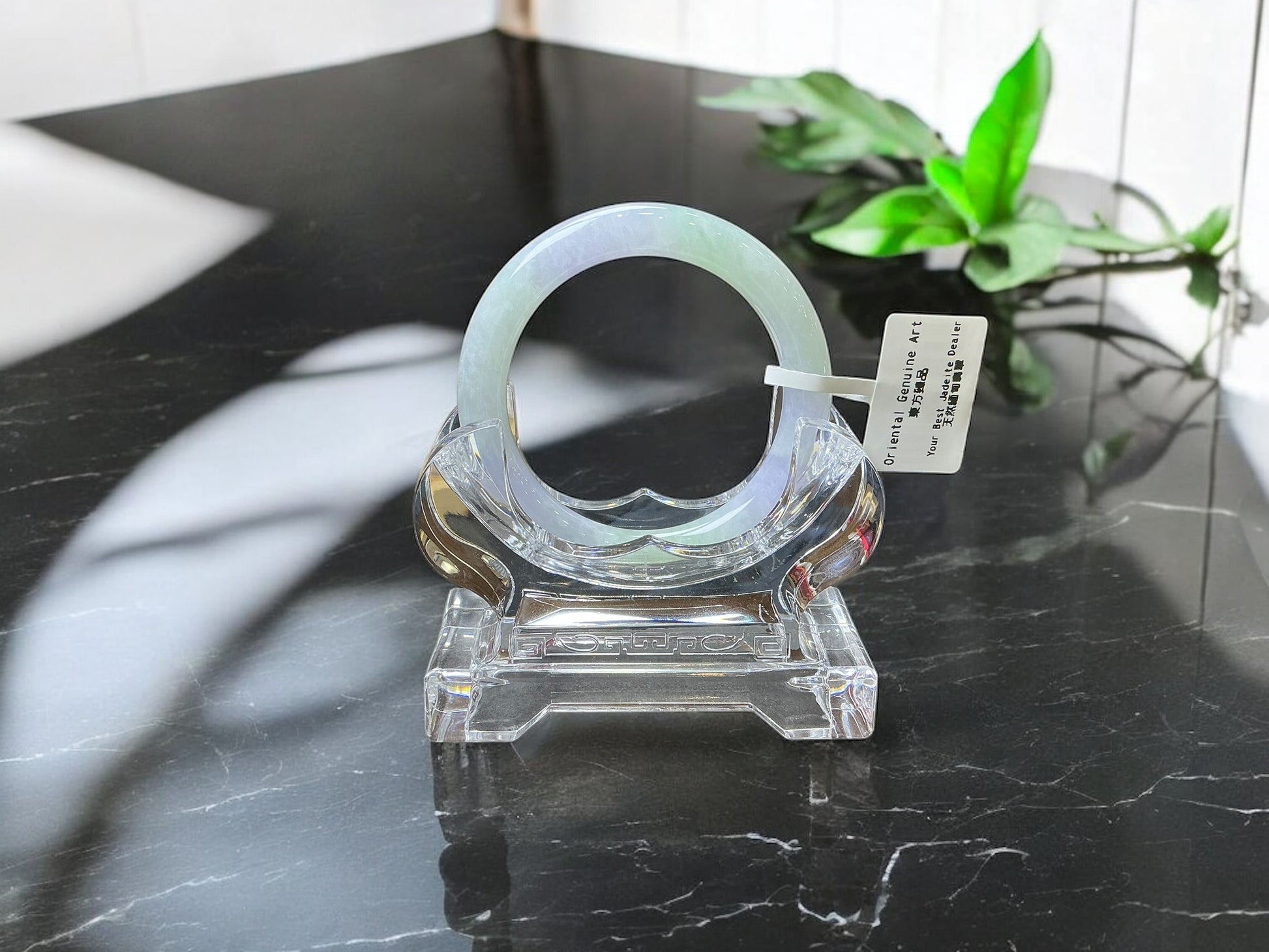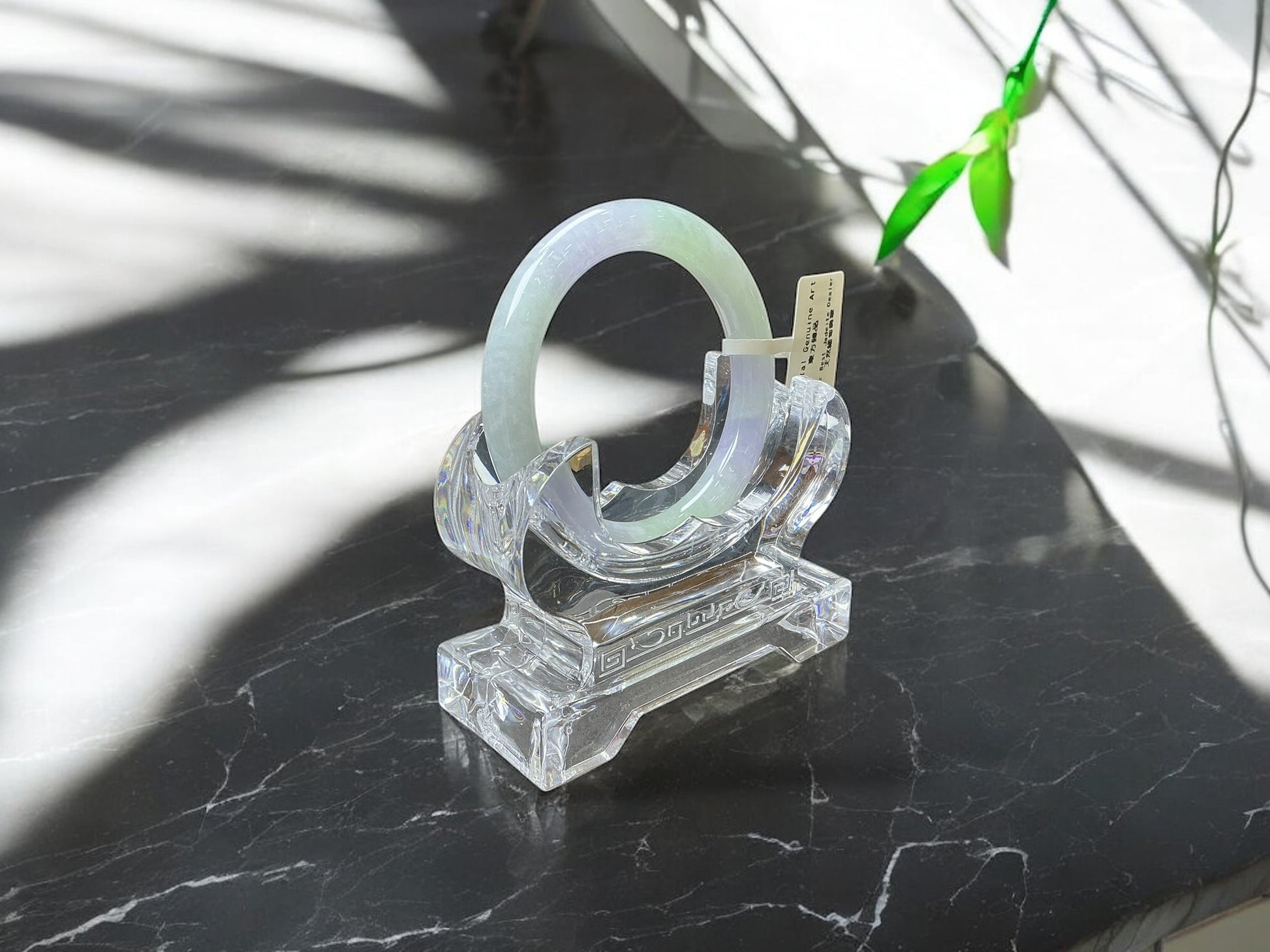 天然緬甸翡翠春彩圓條手鐲(圈口 51)