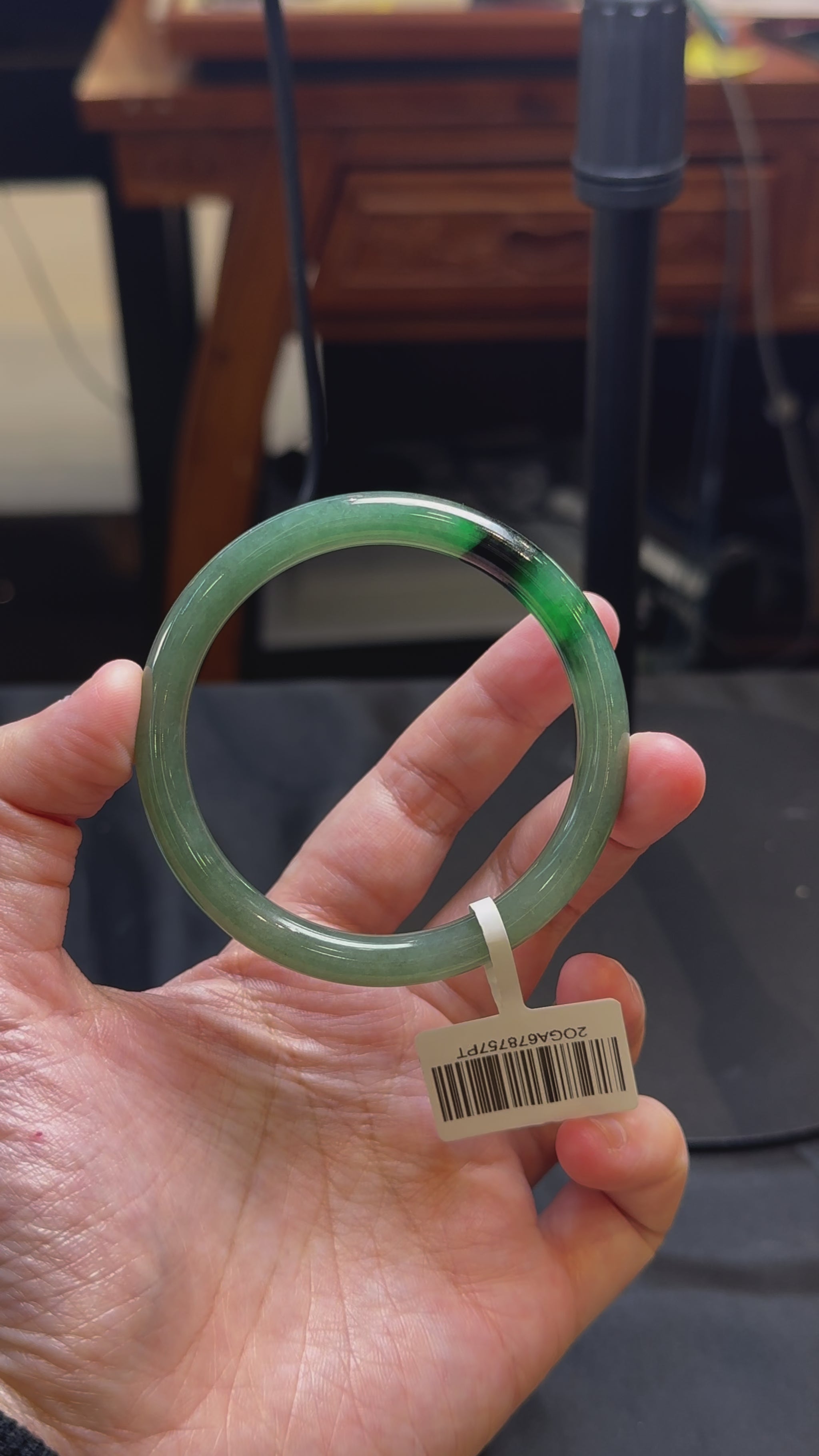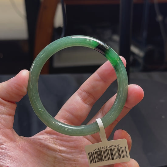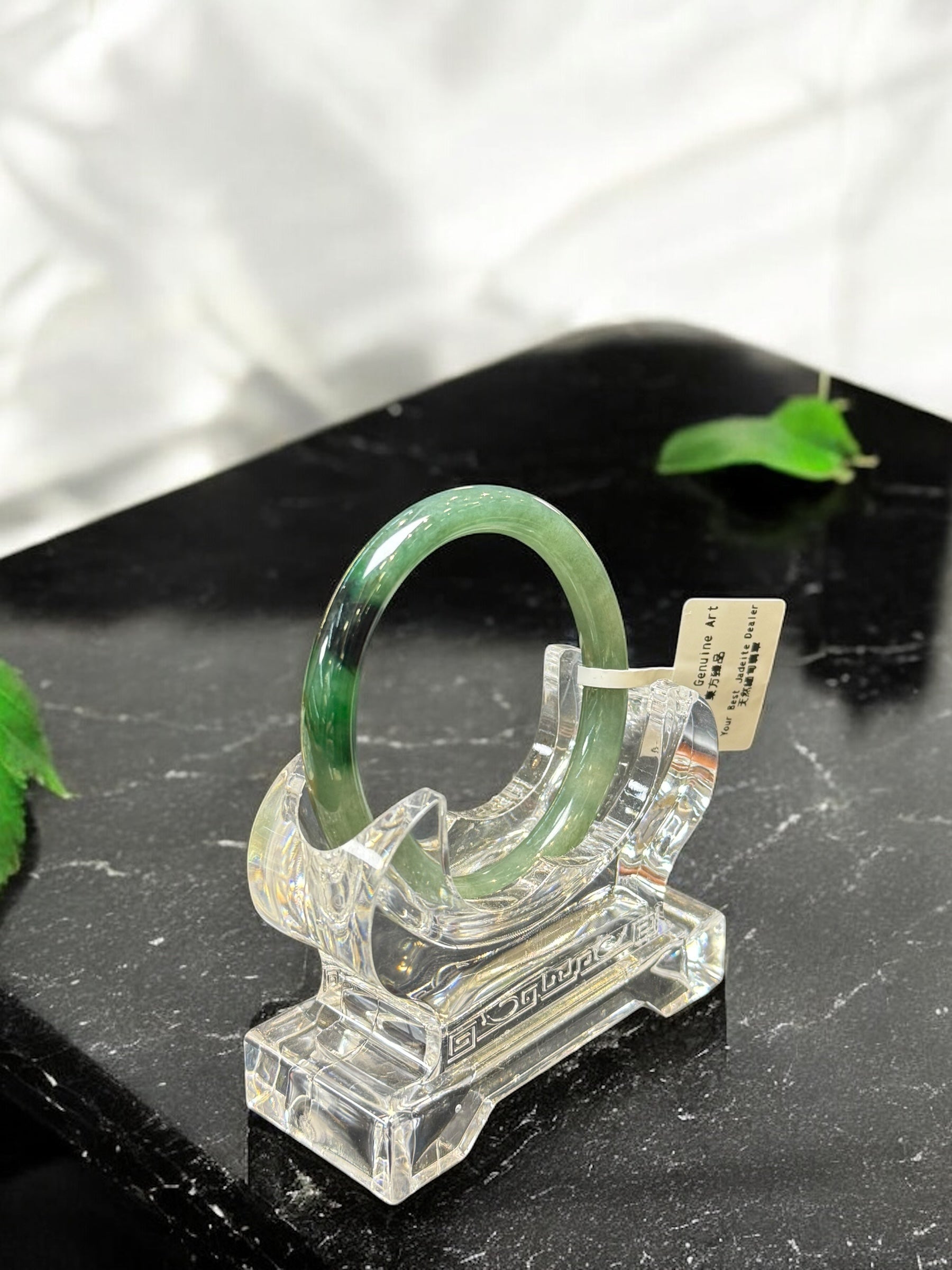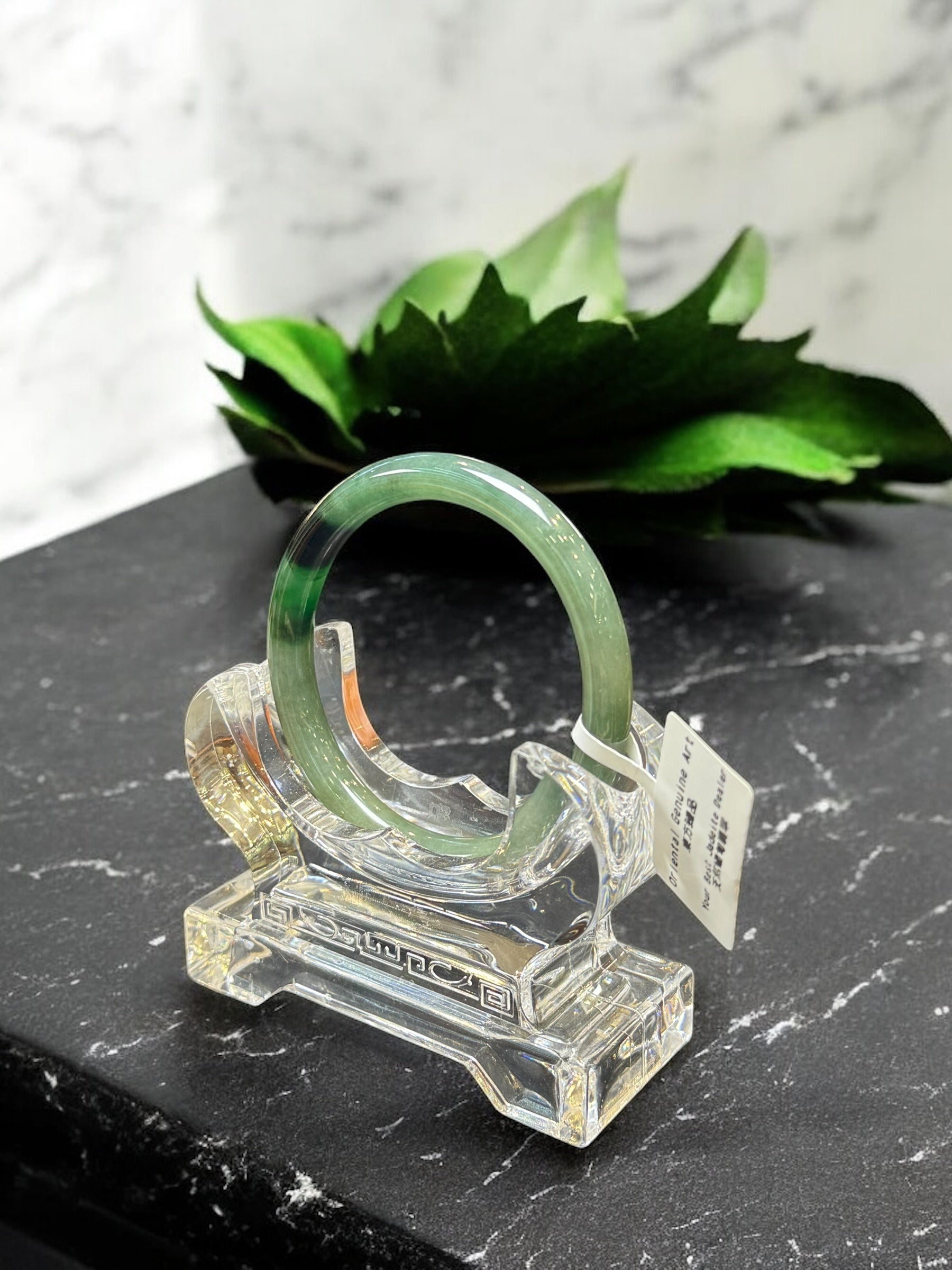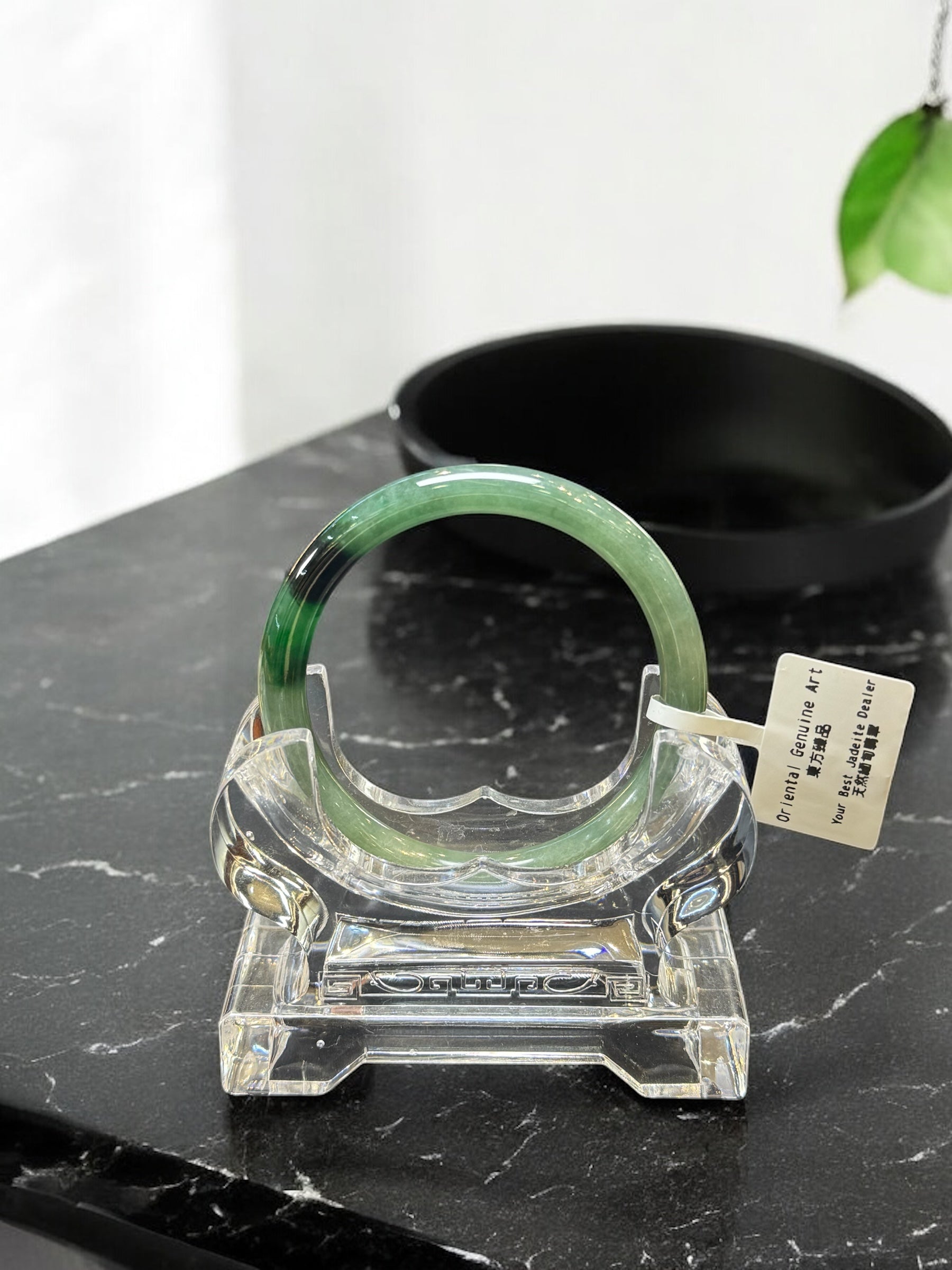 天然緬甸翡翠老藍水圓條手鐲 (圈口 55)
