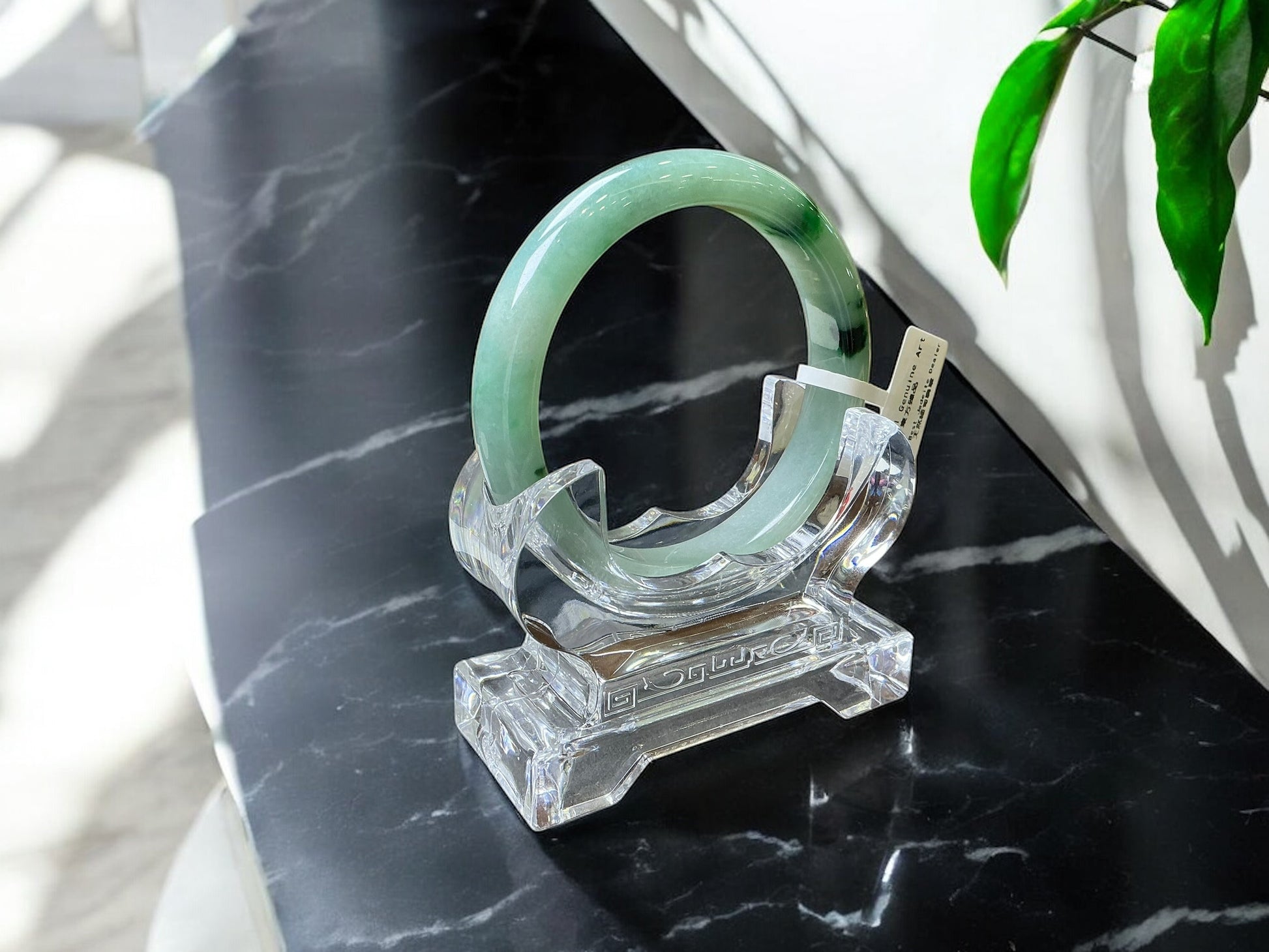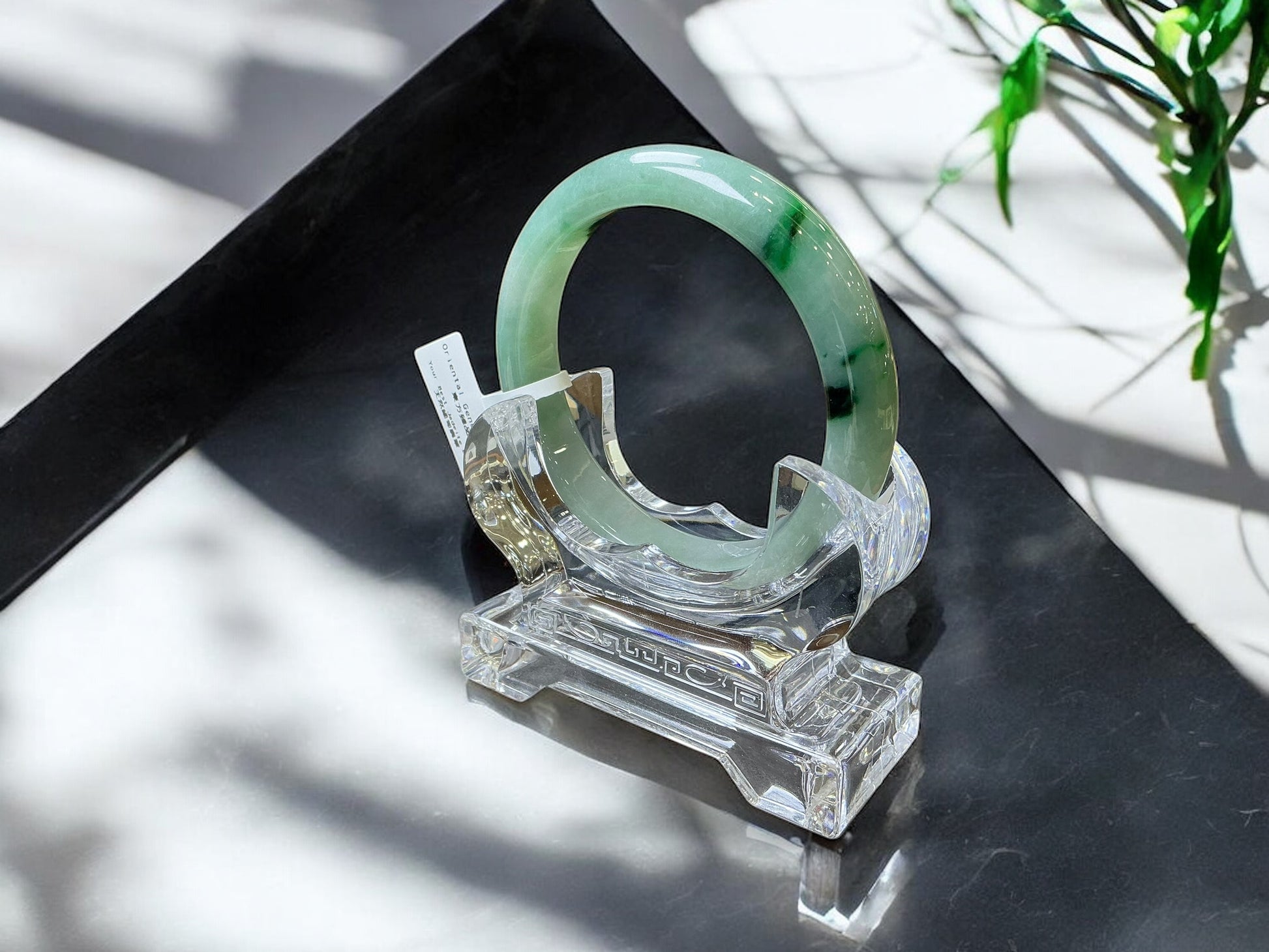 天然緬甸翡翠飄綠正圈手鐲(圈口 61)