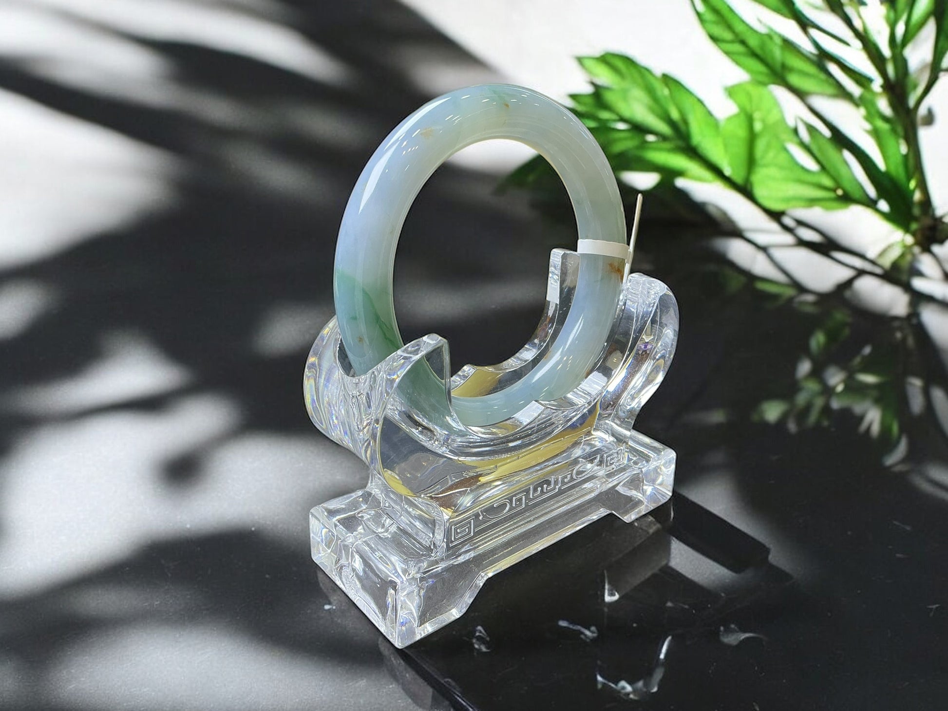 天然緬甸翡翠飄綠色根撒紅翡圓條手鐲(圈口 53)