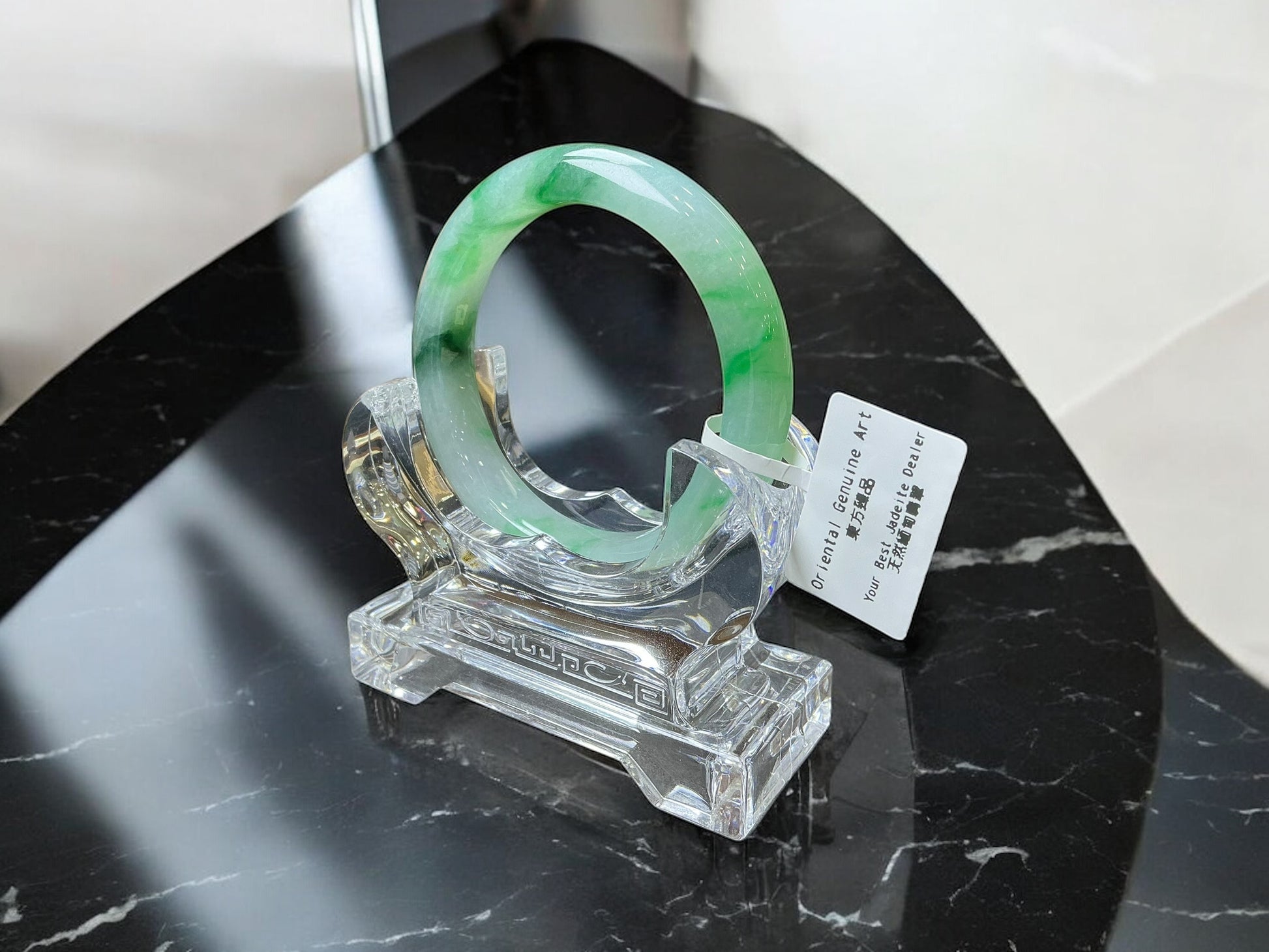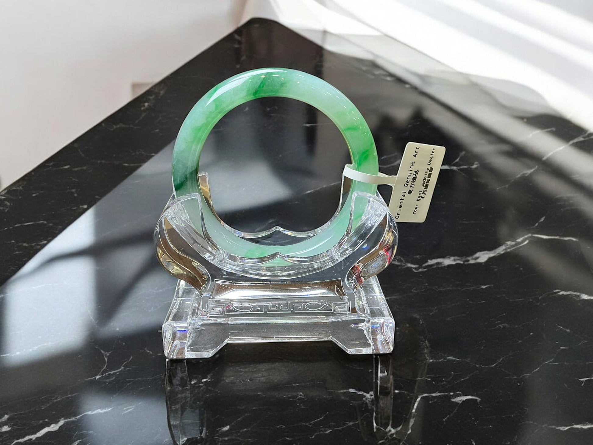 天然緬甸翡翠飄翠綠根正圈手鐲(圈口 54)