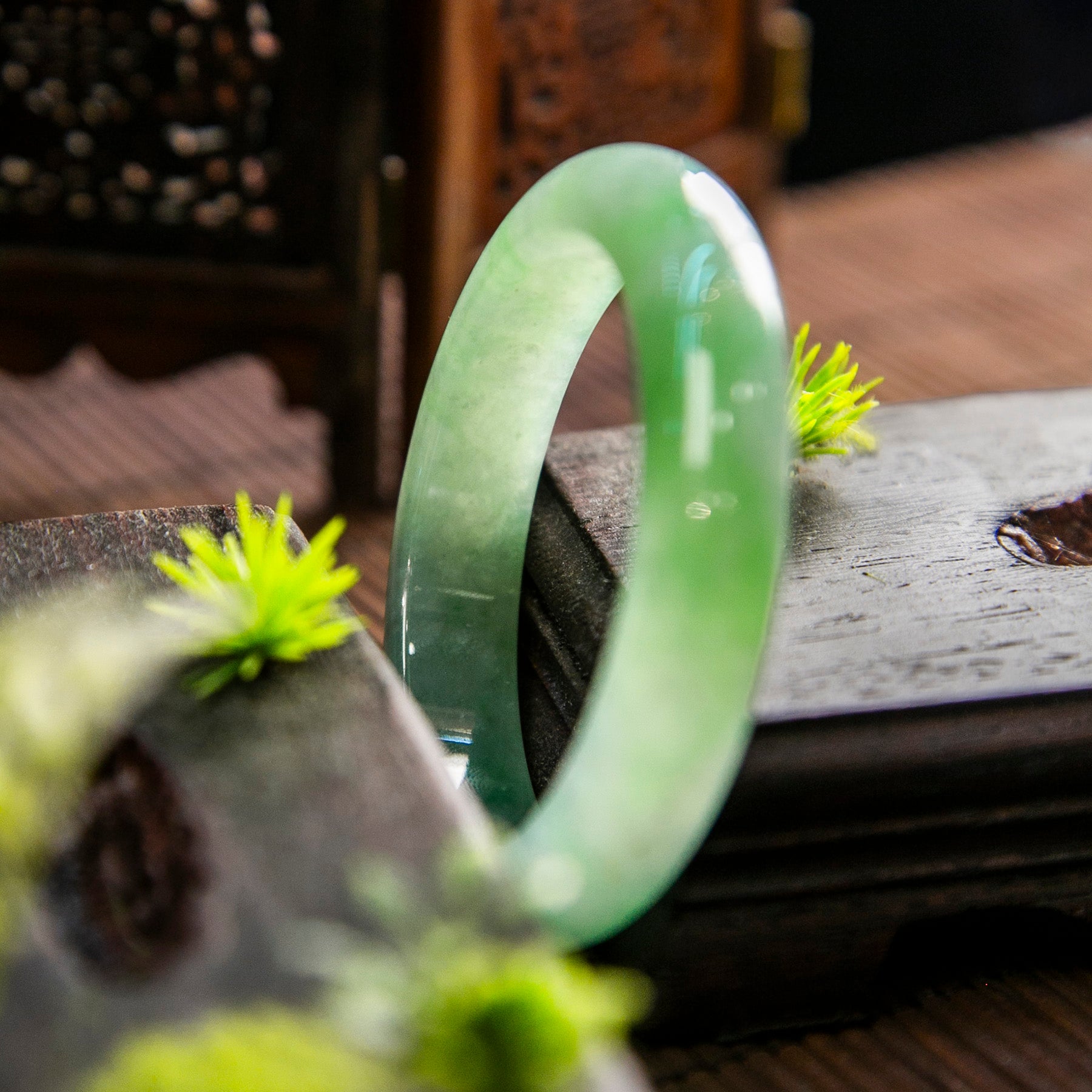 天然緬甸翡翠高冰種陽綠飄花正圈手鐲 (適合手圍 51-53 mm)