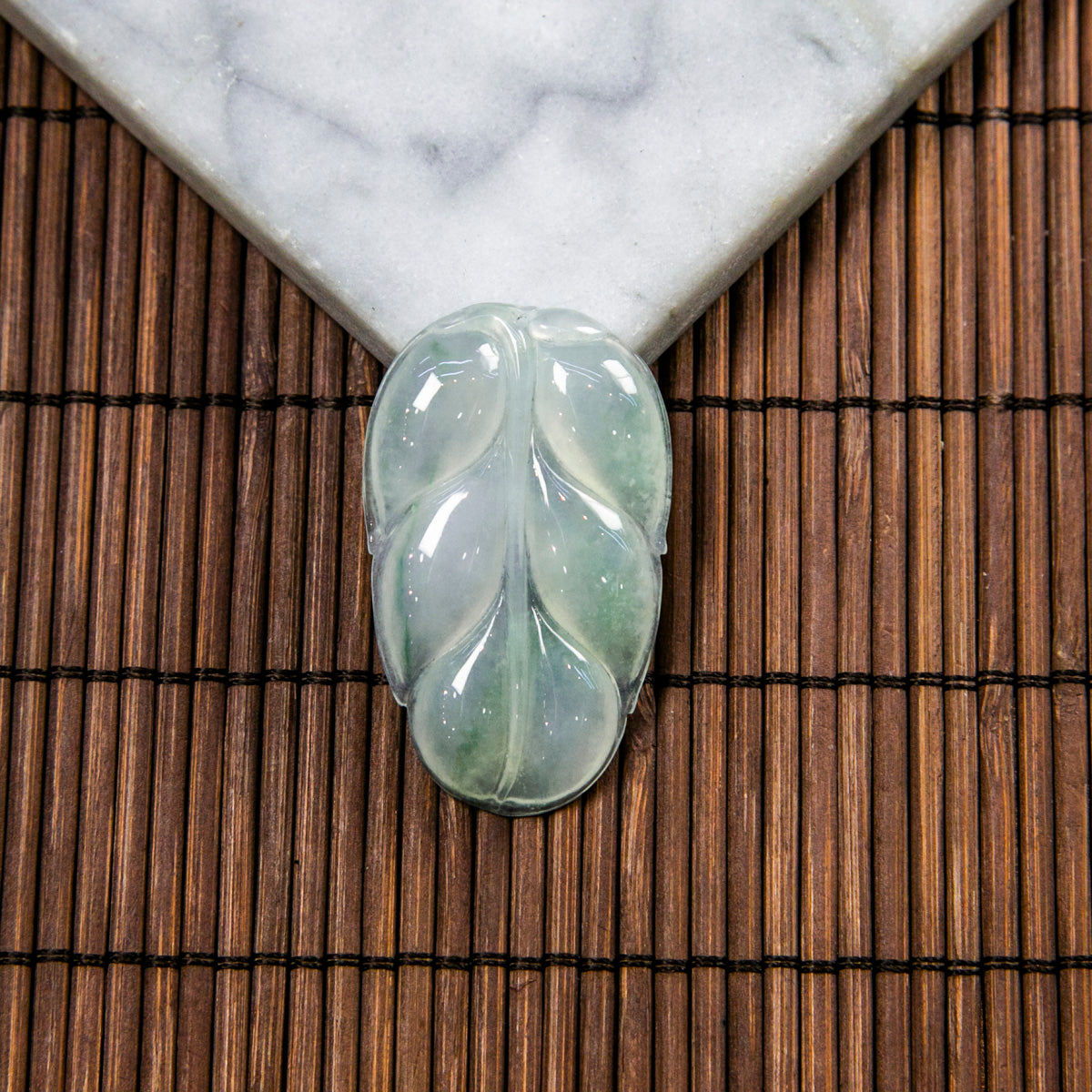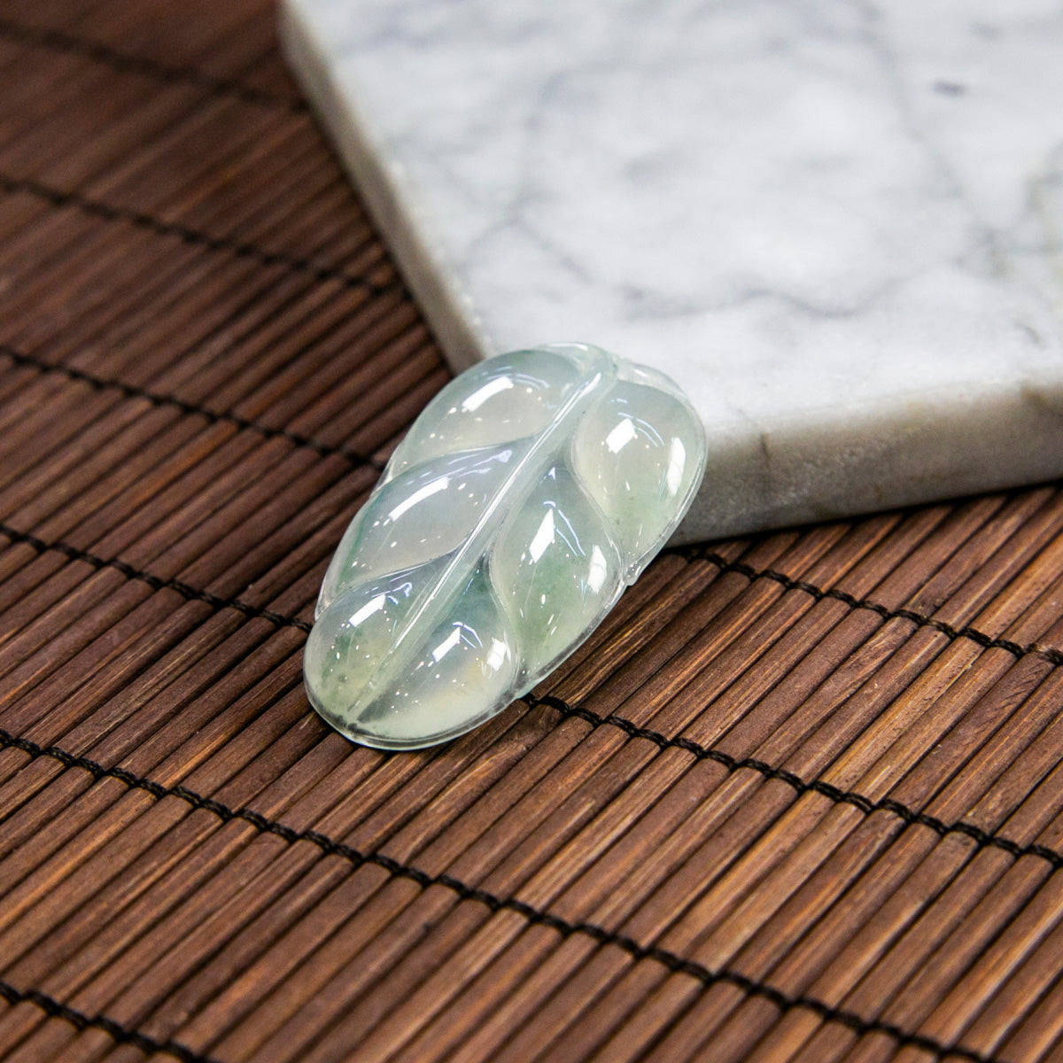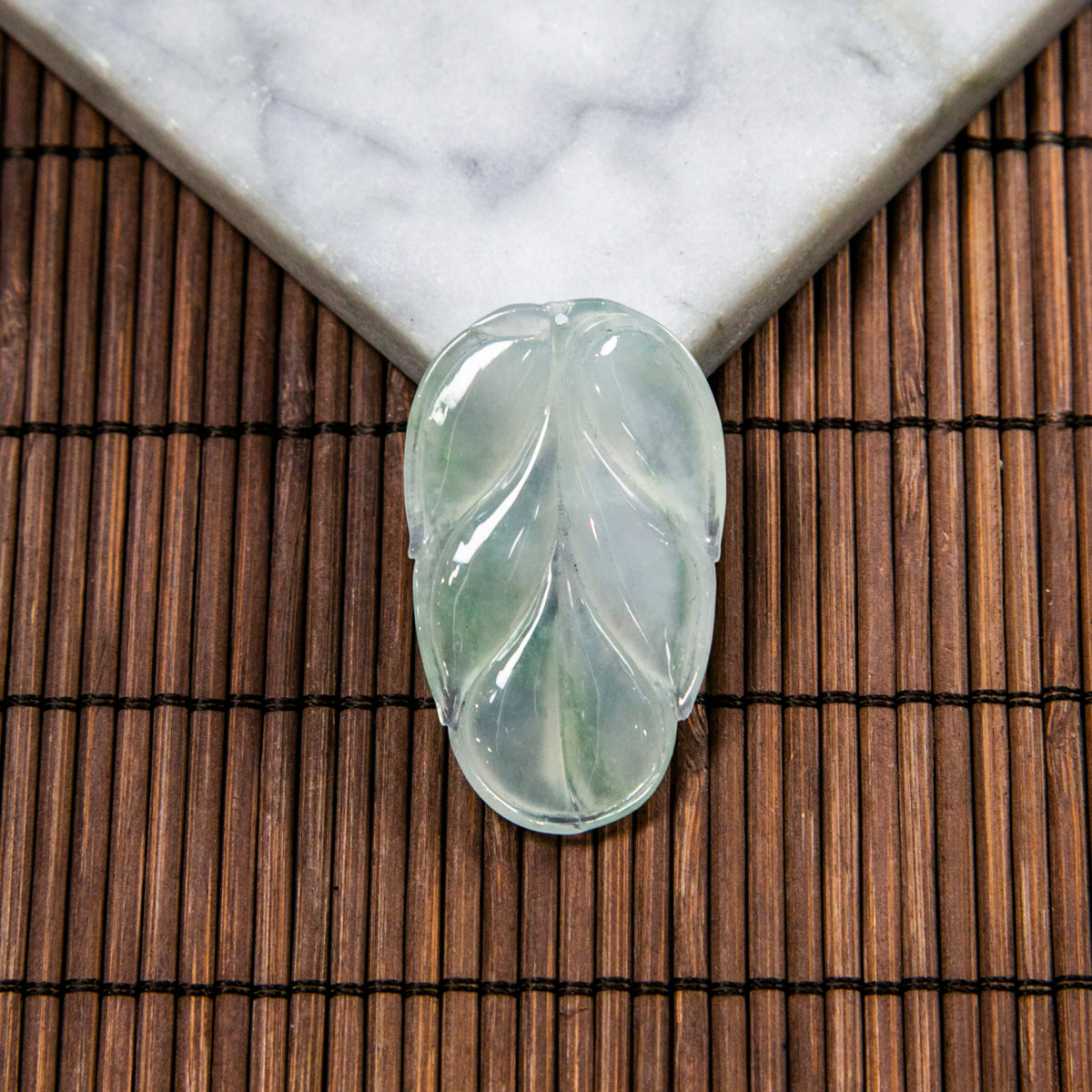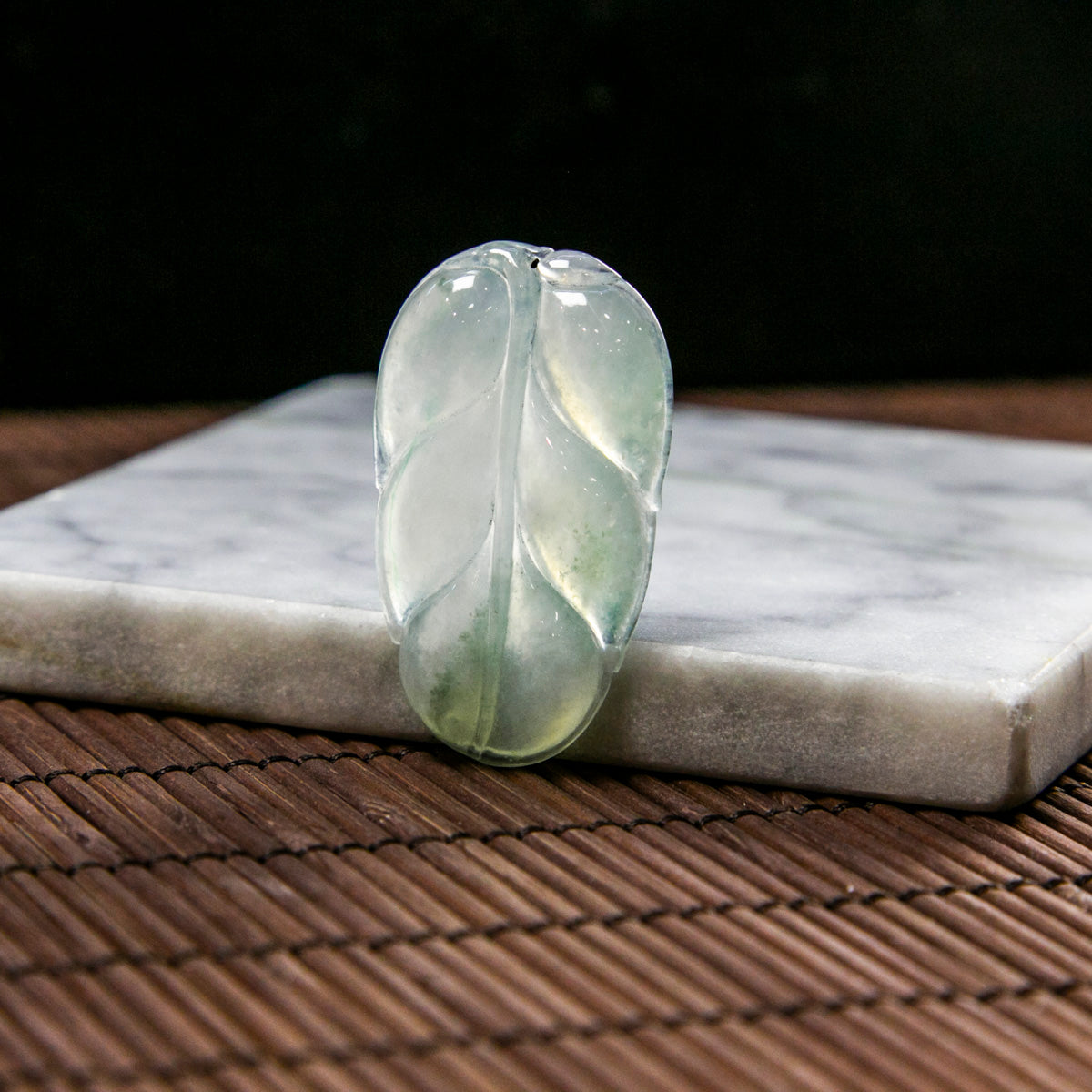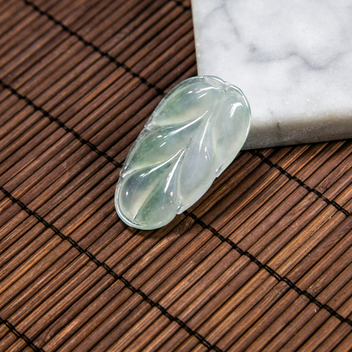 Natural Burmese Jade Icy White Piao Hua Leaf Carved Jade (With Punched Hole)