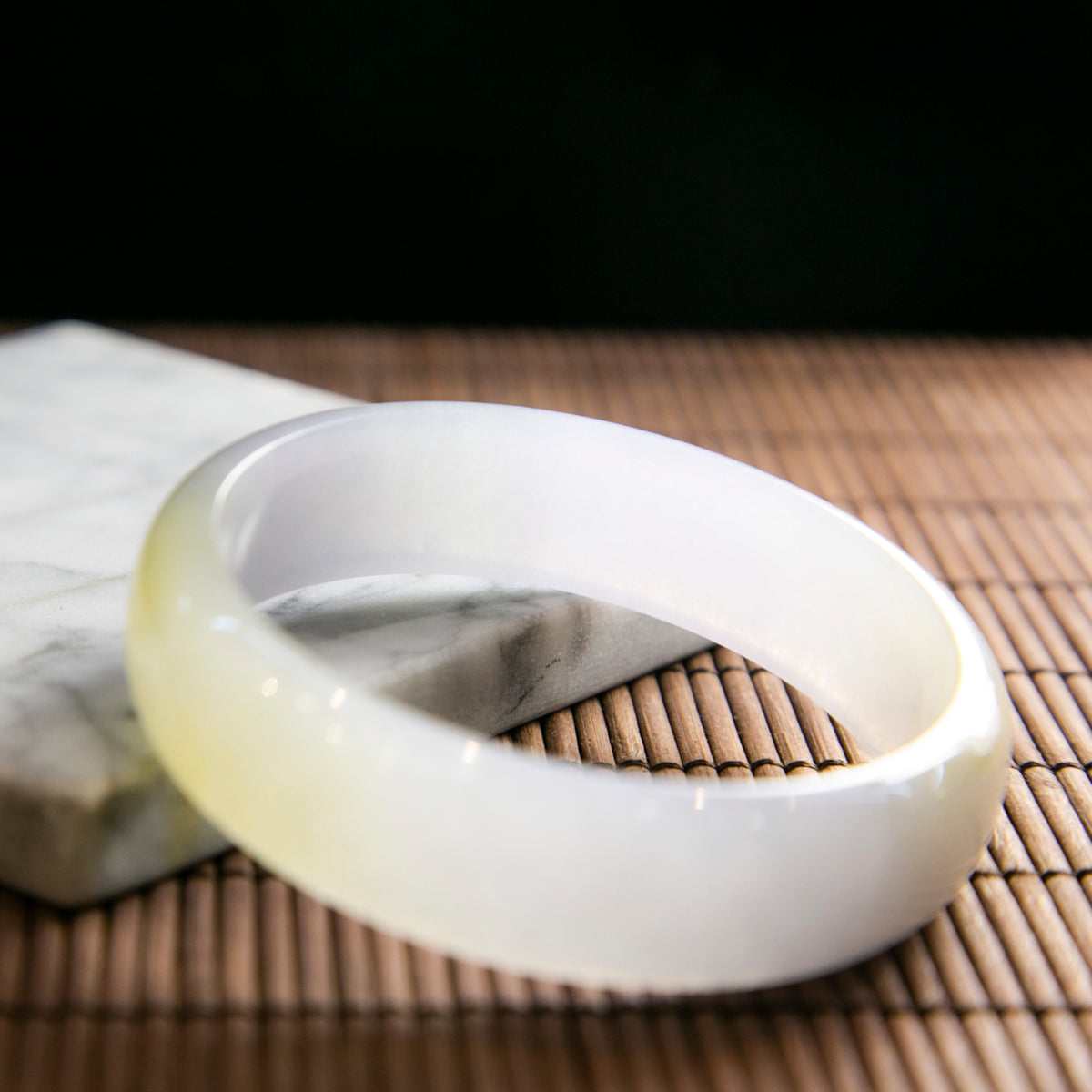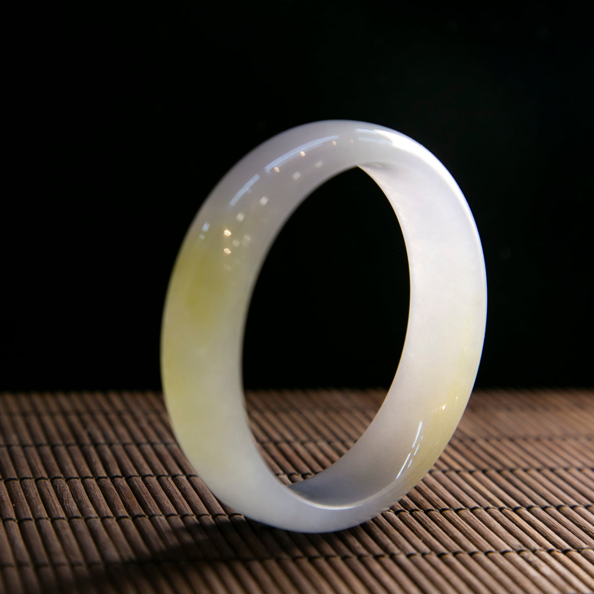Natural Burmese Jade Icy Lavender & Yellow Half Circle Bangle (Fits Size 59-61mm)