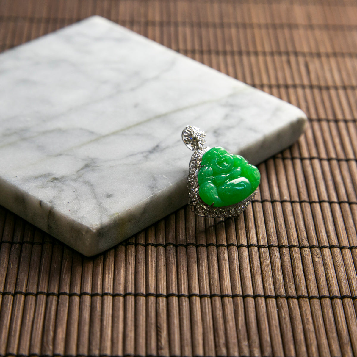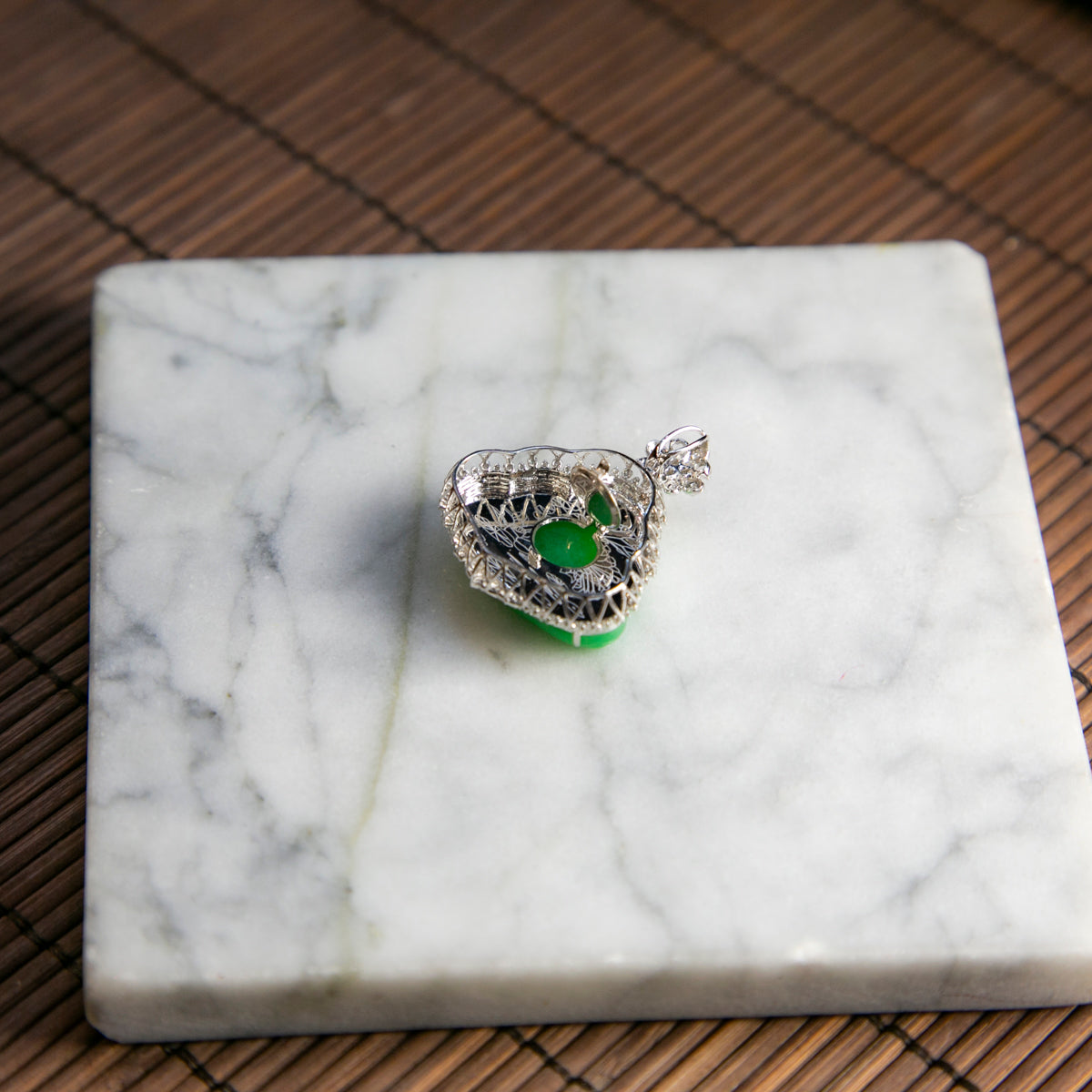 18K Platinum Diamond Natural Burmese Jade Full Green Buddha Pendant
