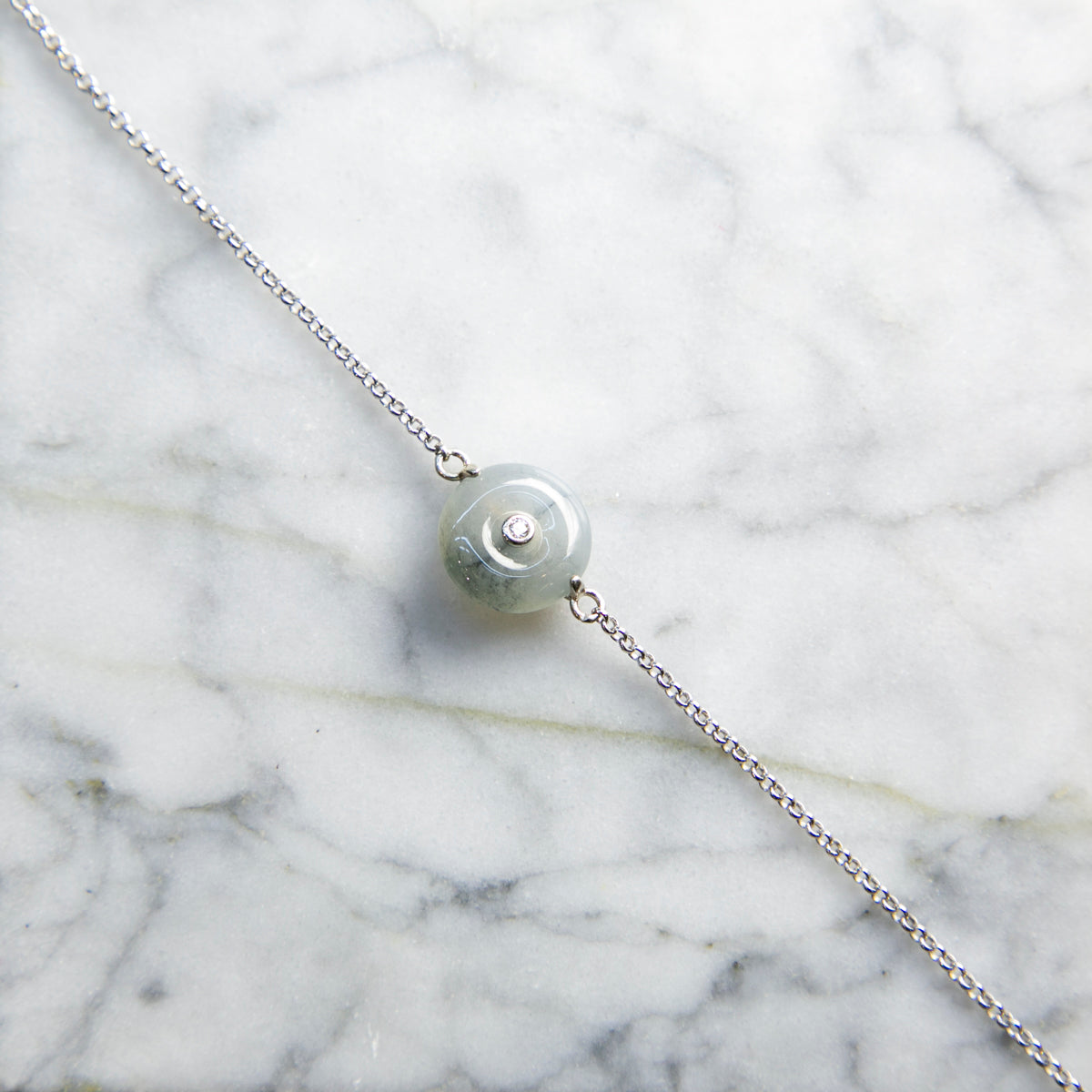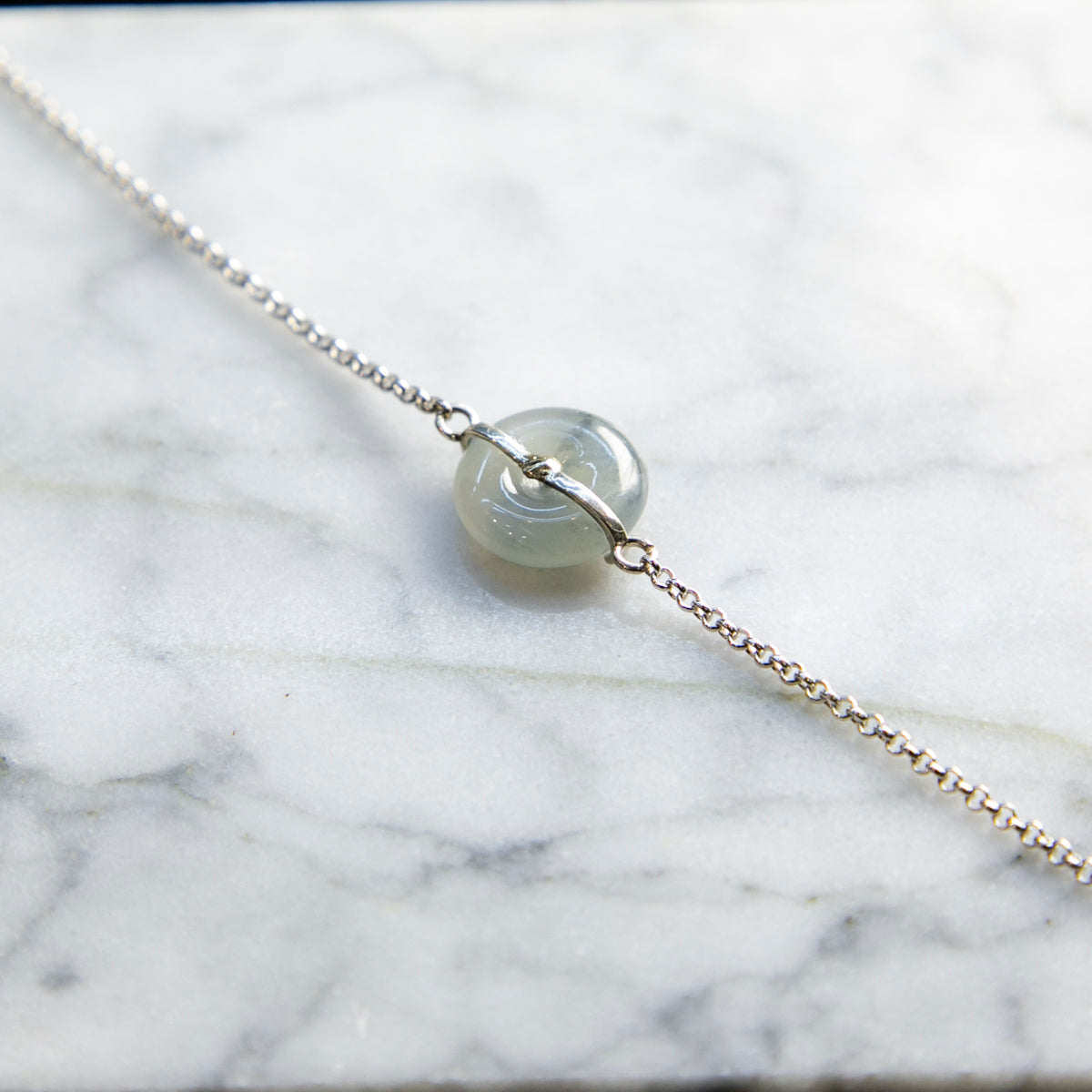 S925 Zircon Natural Burmese Jade Icy Grey Ping An Donut Bracelet