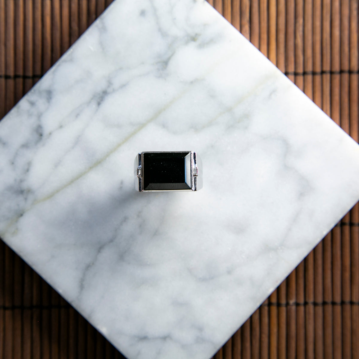 18K Platinum Diamond Natural Burmese Jade Ink Jade Rectangle Ring