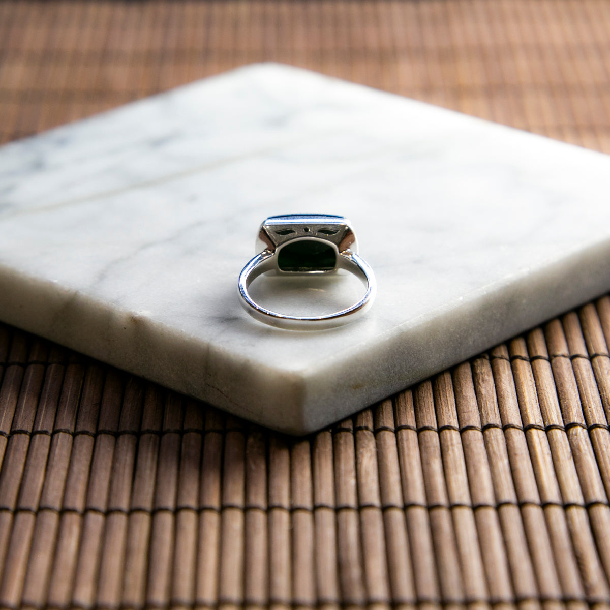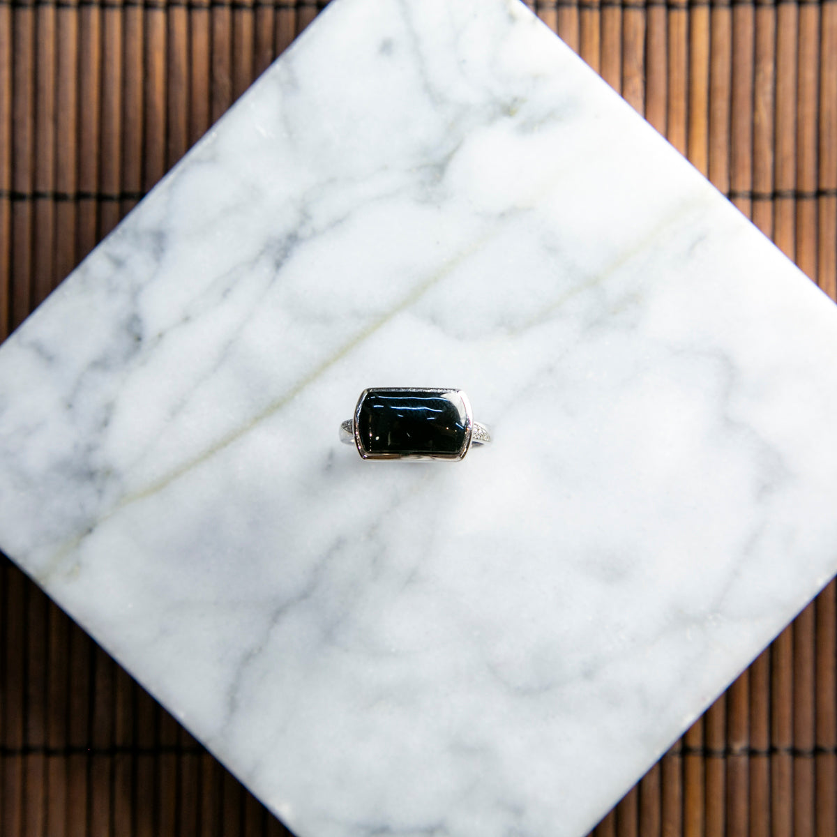 18K Platinum Diamond Natural Burmese Jade Ink Jade Rectangle Ring