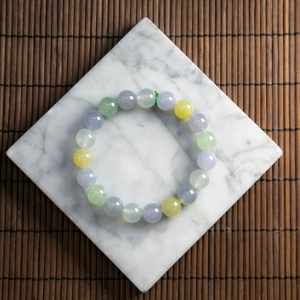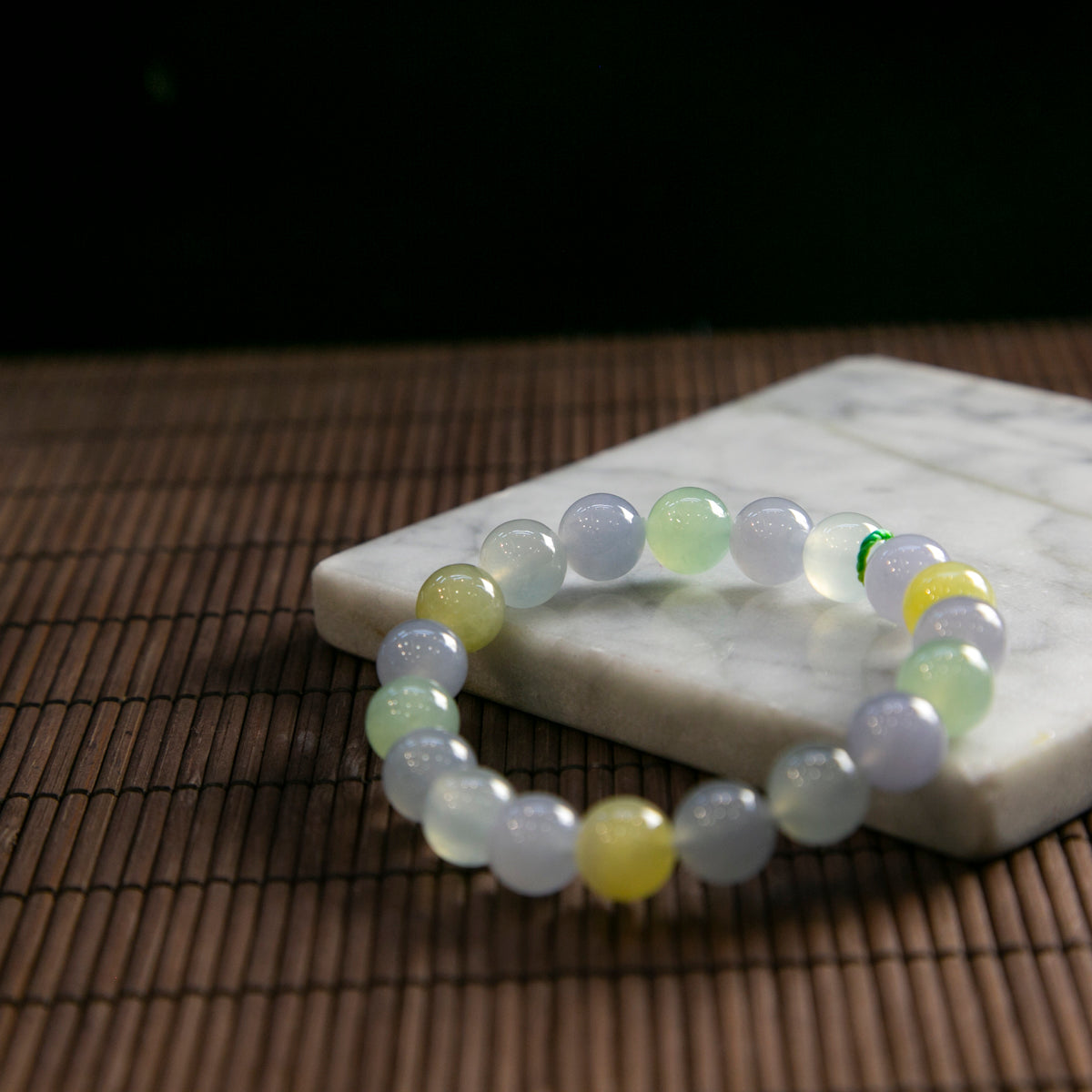 Natural Burmese Jade Multi-Color Icy Beaded Bracelet