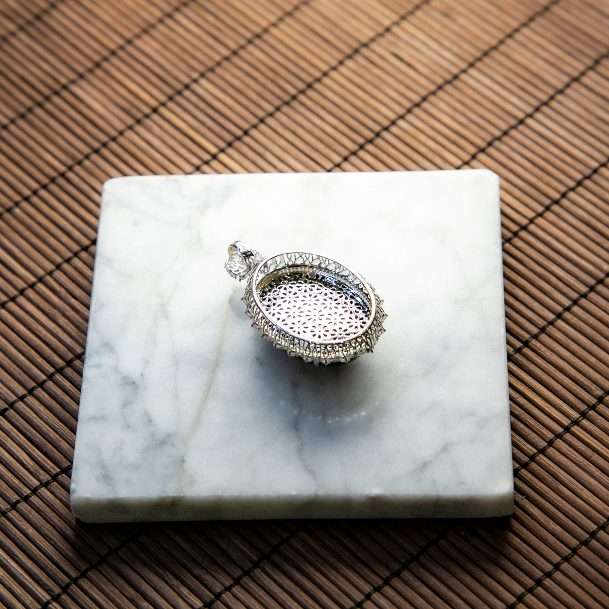 18K Platinum Diamond Natural Burmese Jade Big Cabochon Pendant