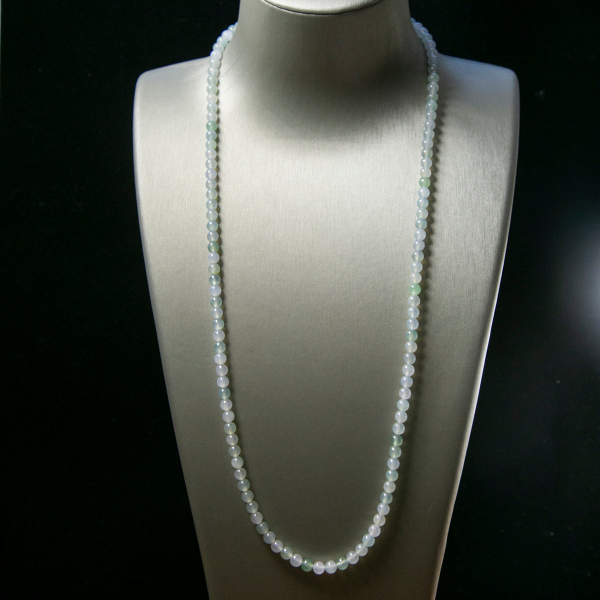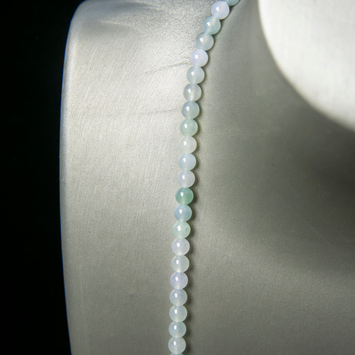 Natural Burmese Jade Icy Piao Hua Beaded Necklace