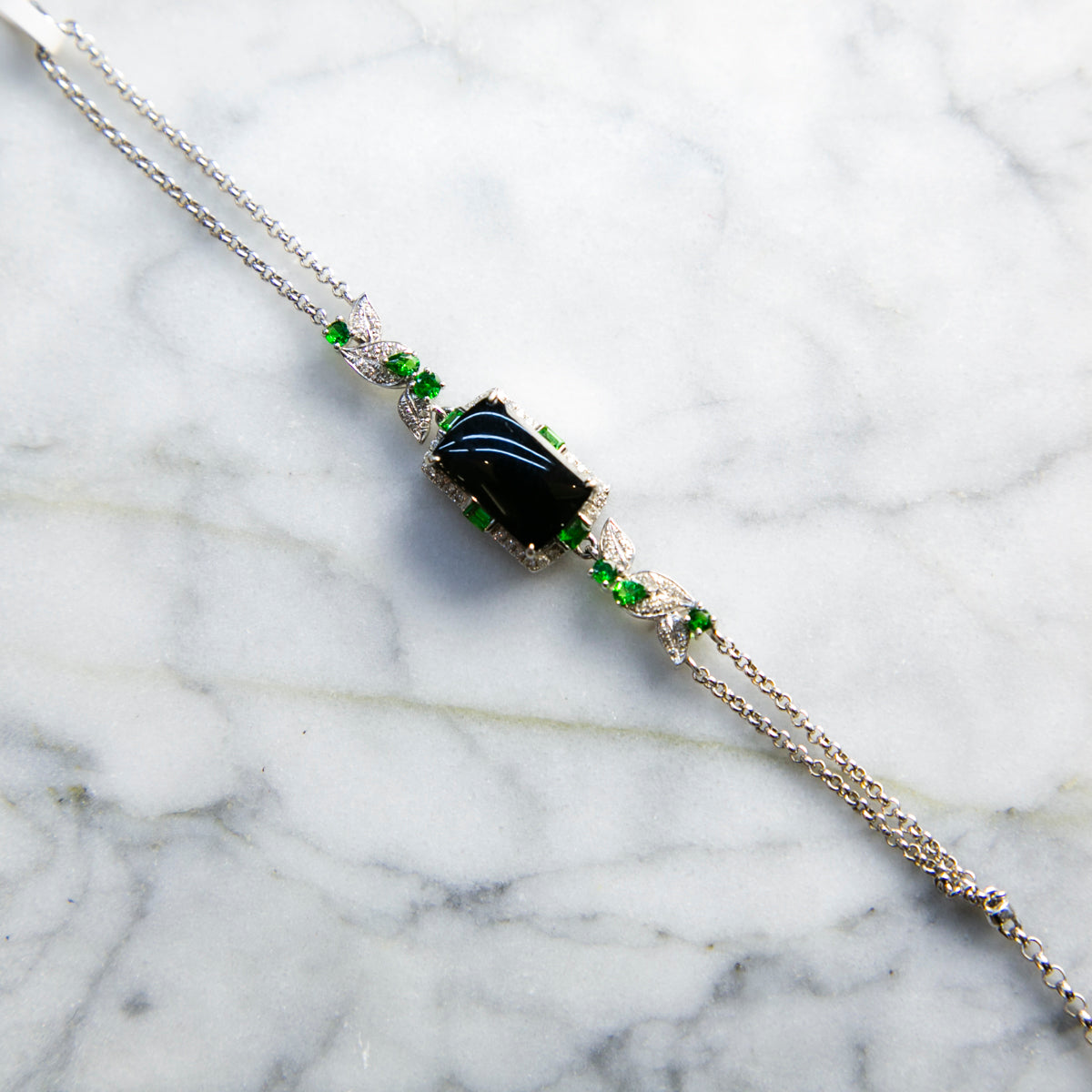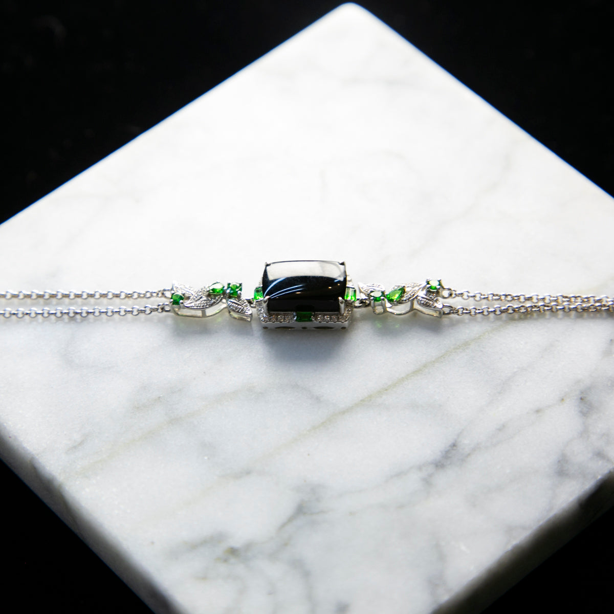18K Gold Diamond Natural Burmese Jade Ink Jade Bracelet