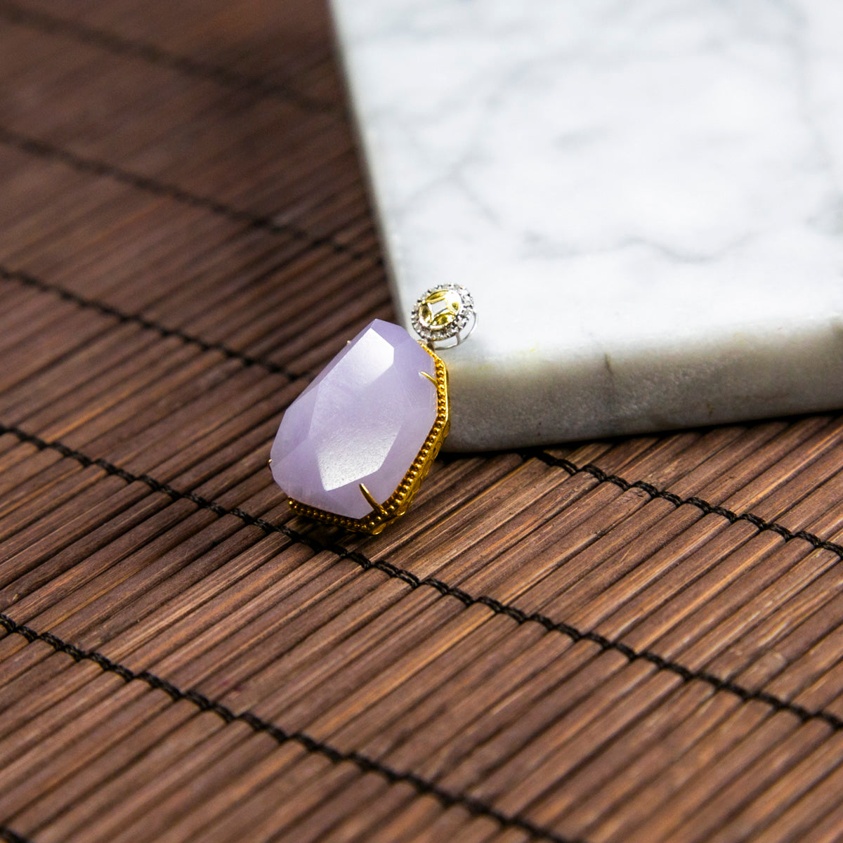 18K Gold Diamond Natural Burmese Jade Icy Purple Pendant