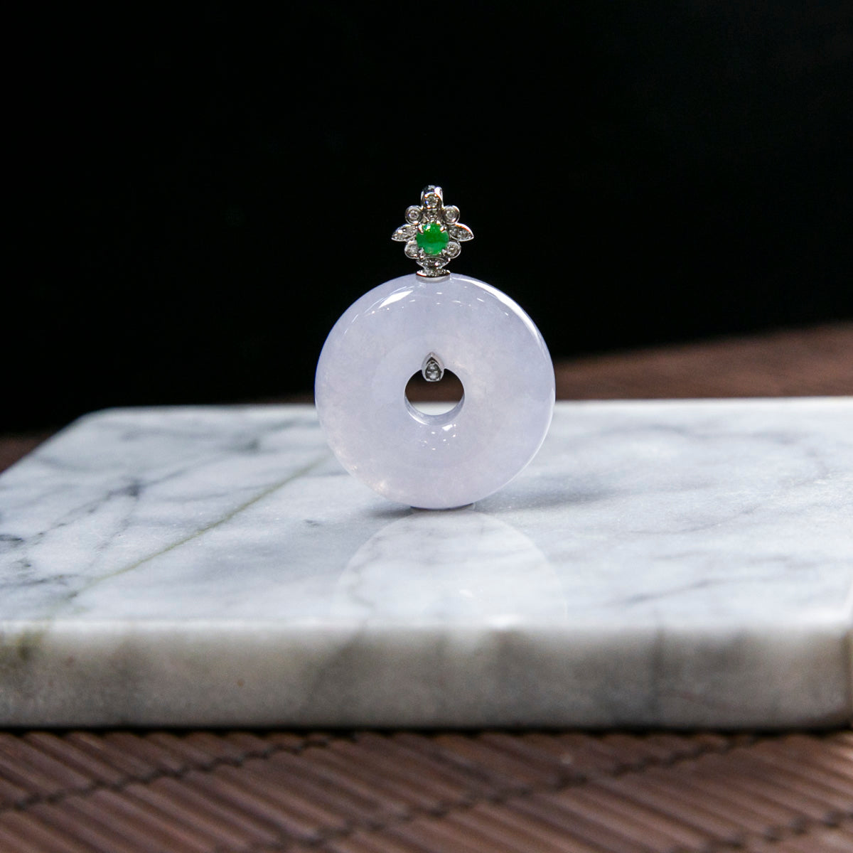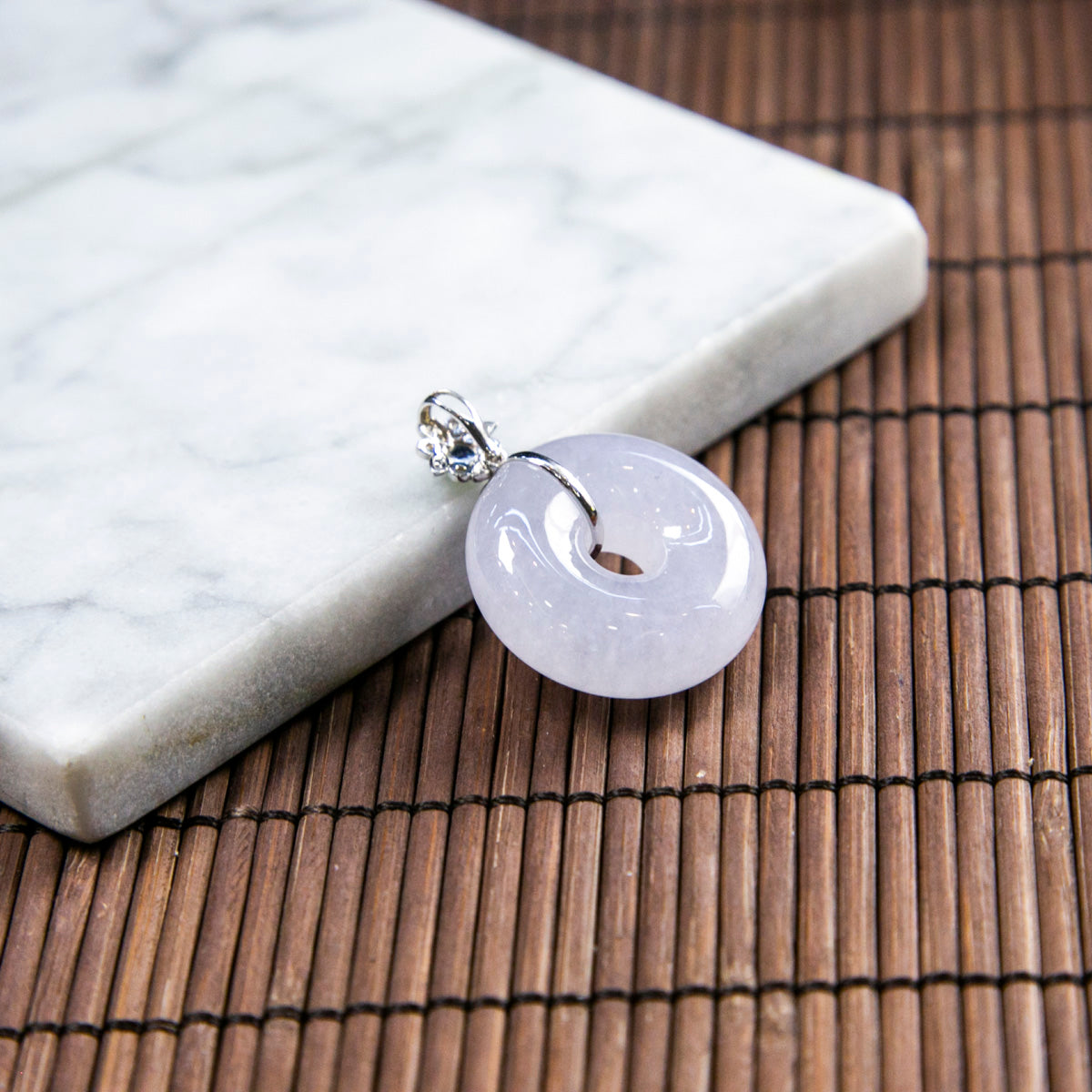 18K Platinum Diamond Natural Burmese Jade Lavender Donut Pendant