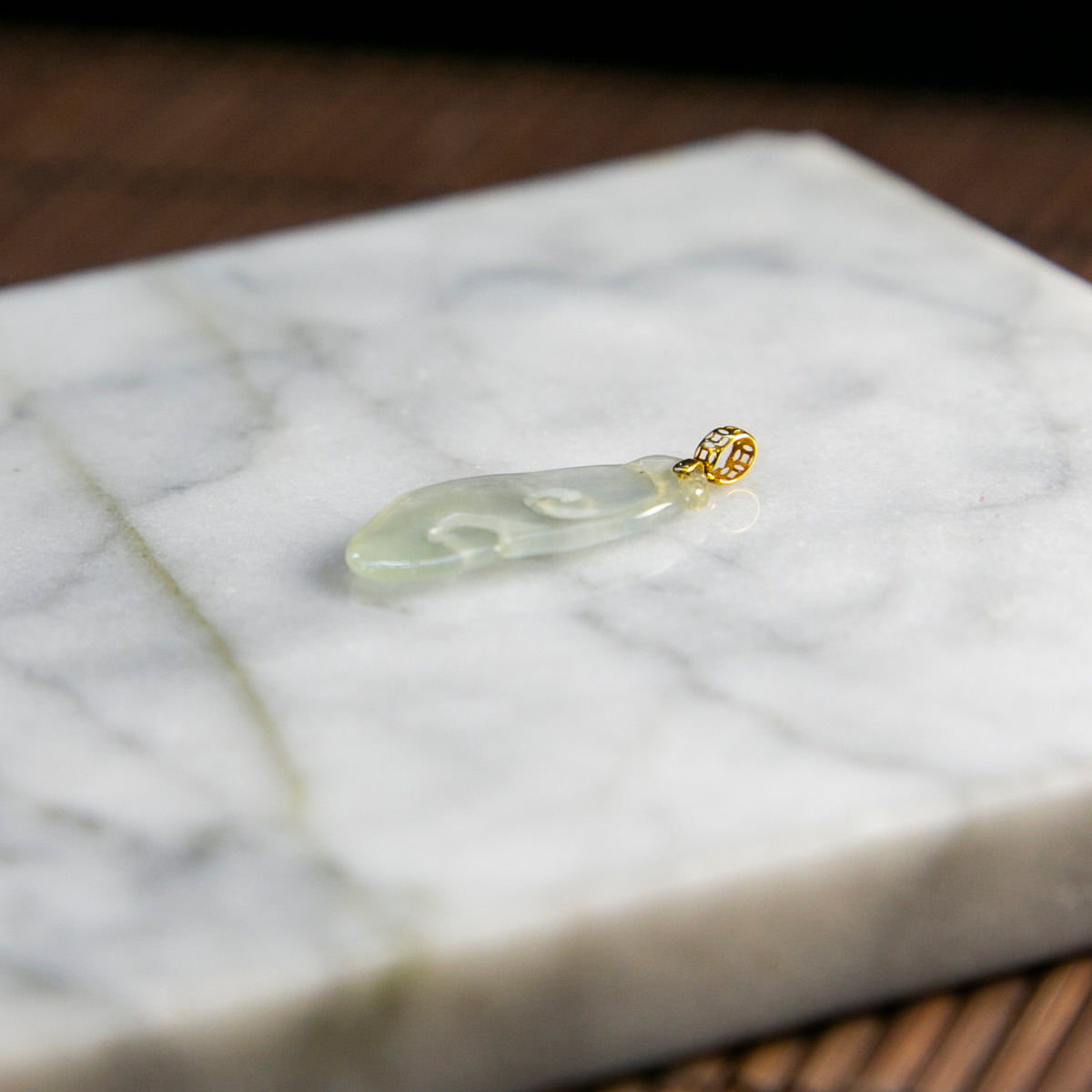 18K Gold Natural Burmese Jade Icy White Ruyi Pendant