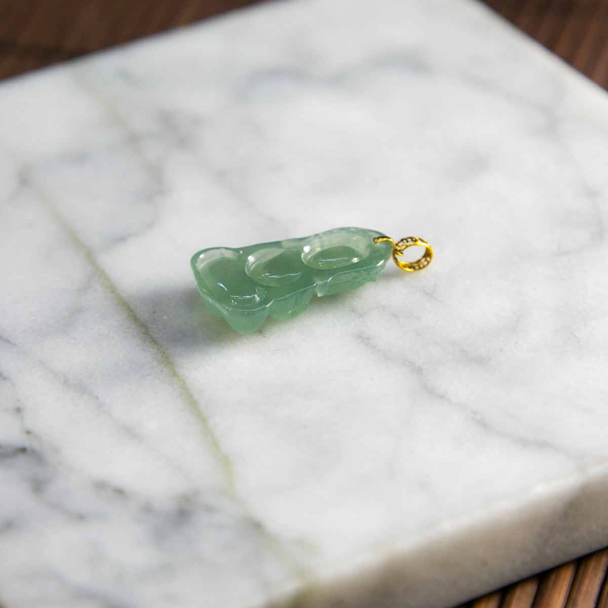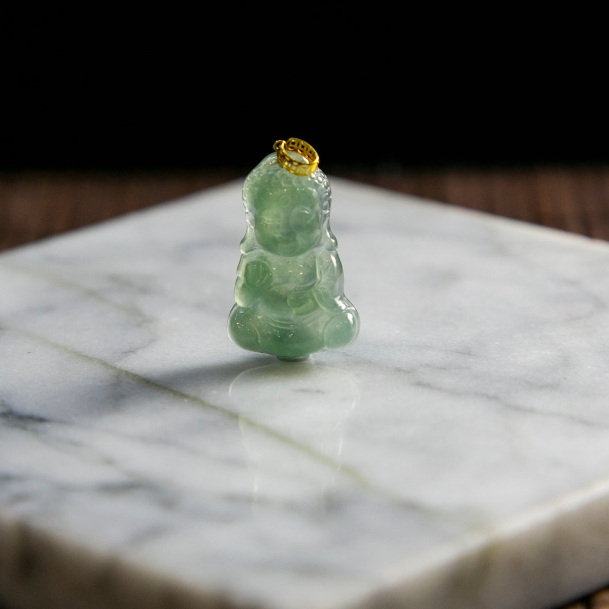 18K Gold Natural Burmese Jade Icy Green Baby Buddha Pendant