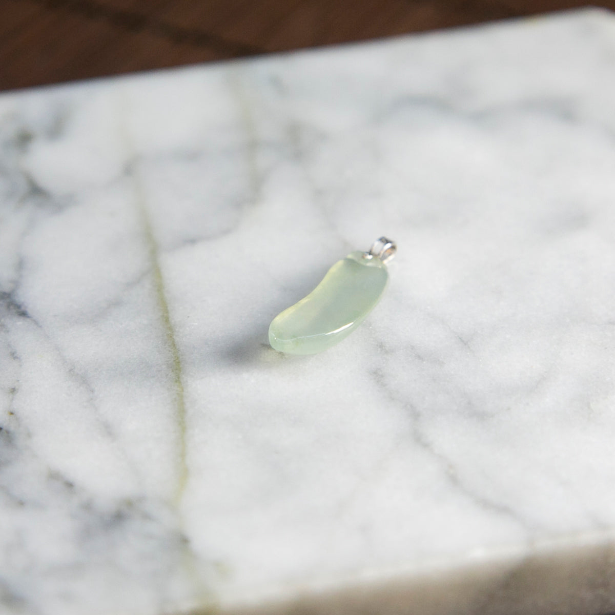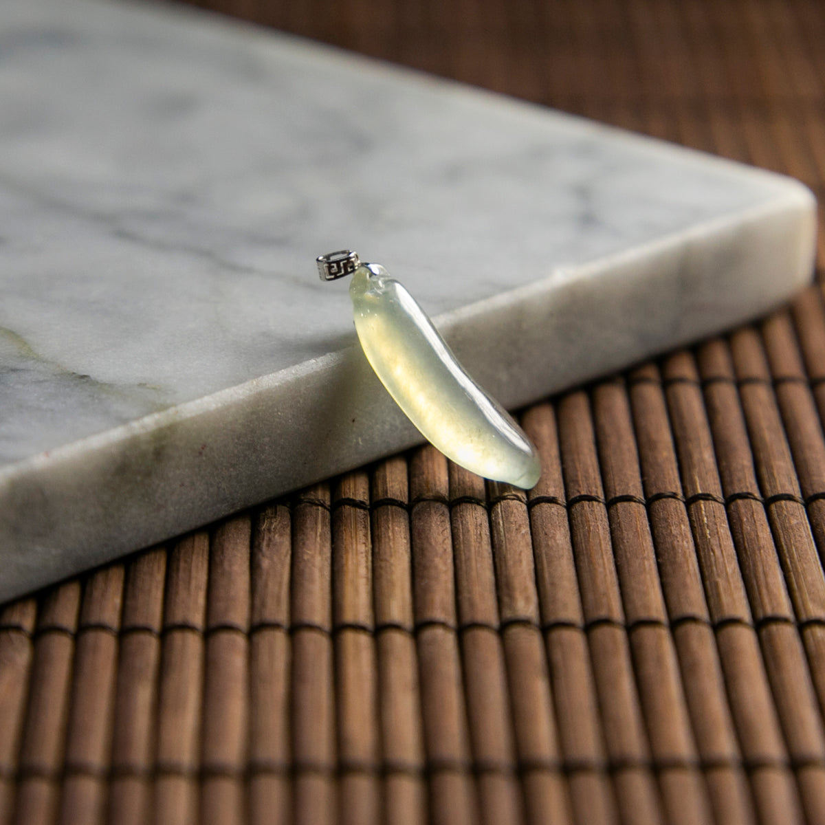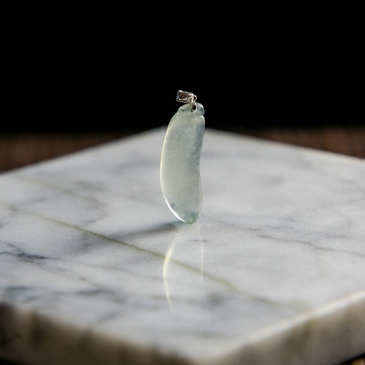 18K Gold Natural Burmese Jade Icy White Loofa Pendant