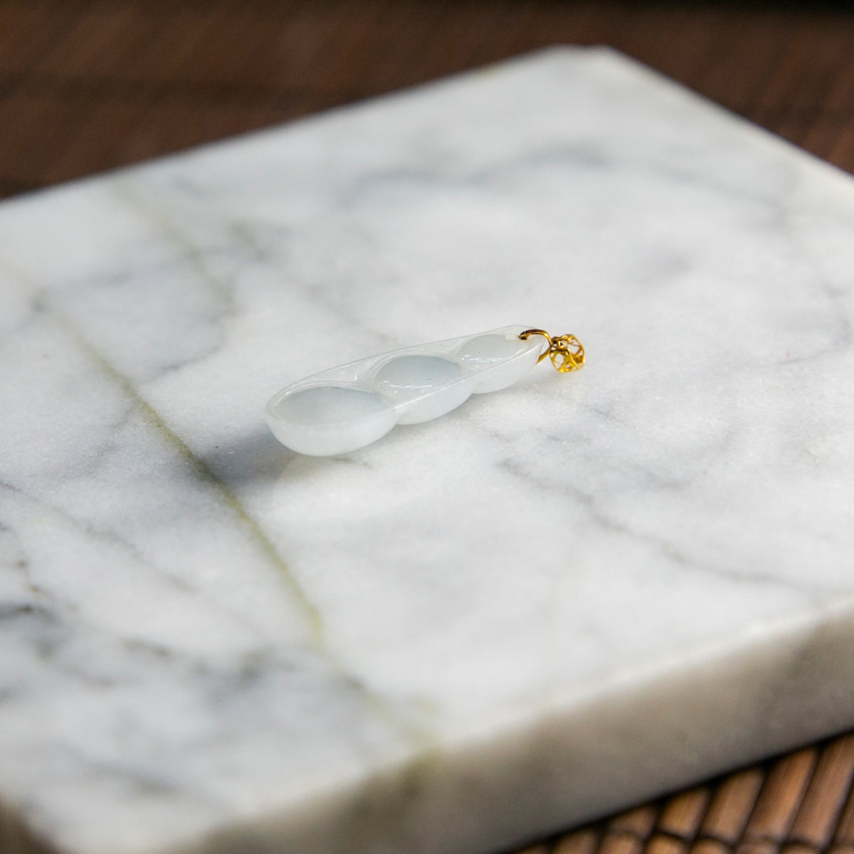 18K Gold Natural Burmese Jade Icy White Bean Pendant