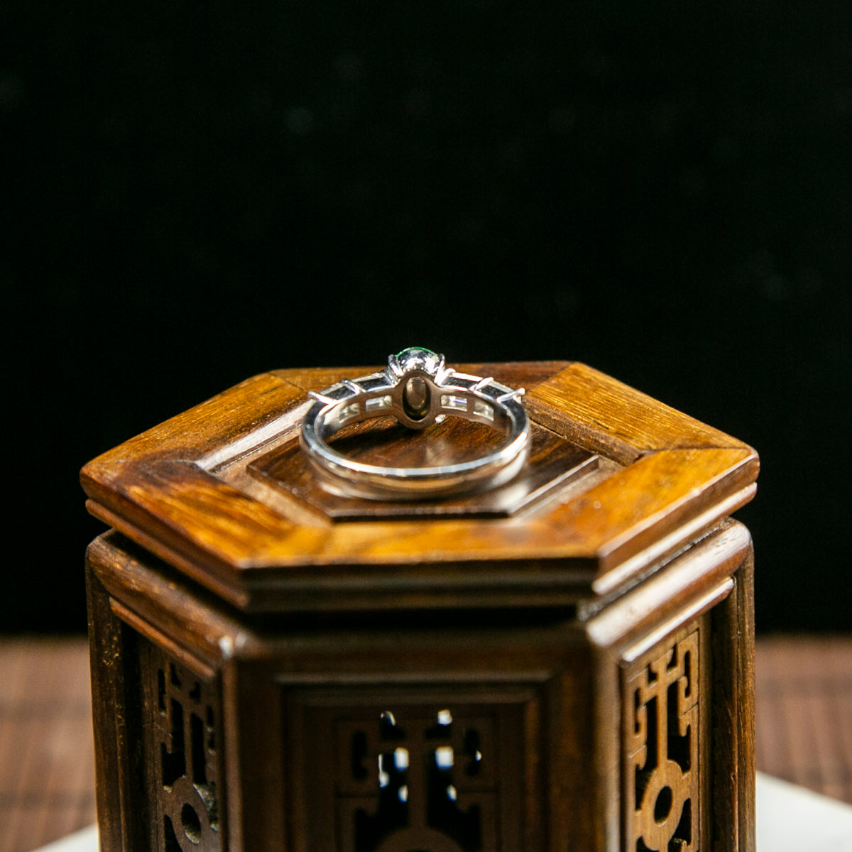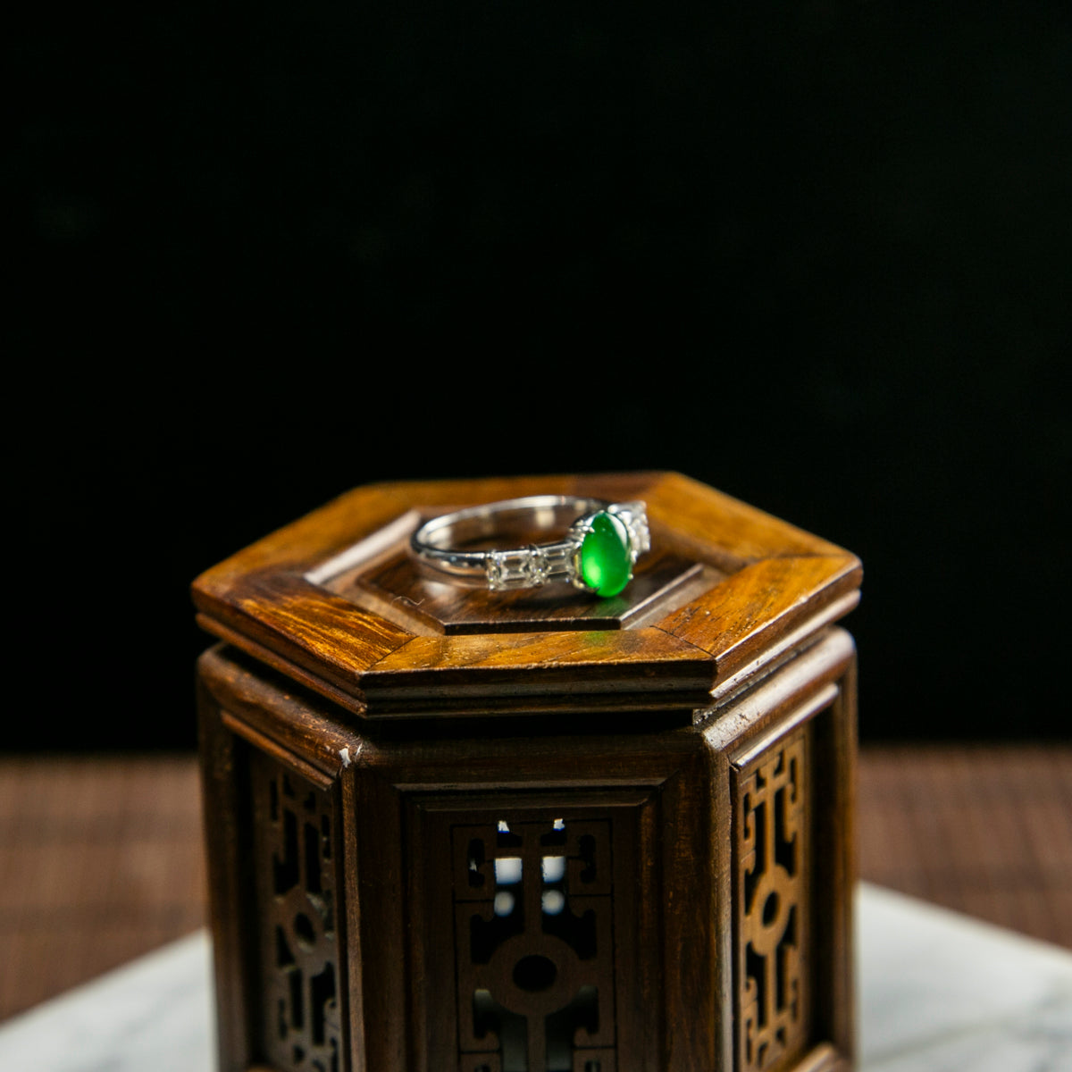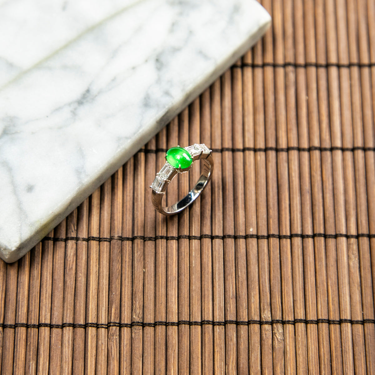 18K Platinum Diamond Natural Burmese Jade Imperial Green Cabochon Ring