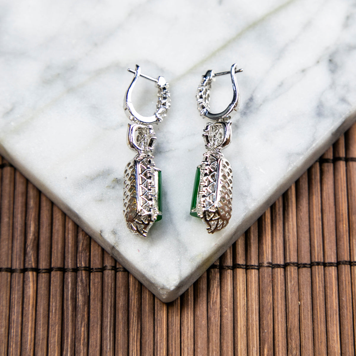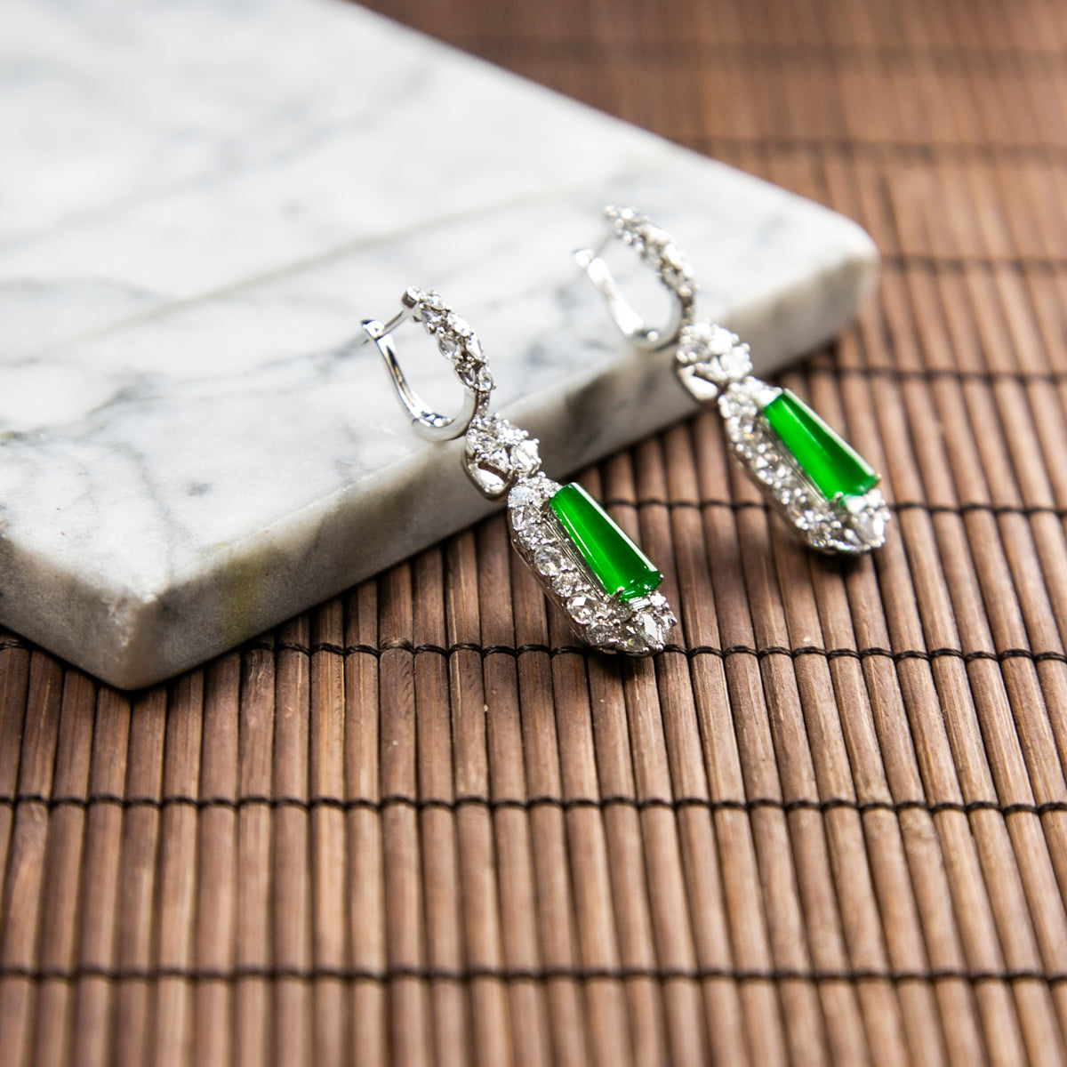 18K Platinum Diamond Natural Burmese Jade Imperial Green Earrings