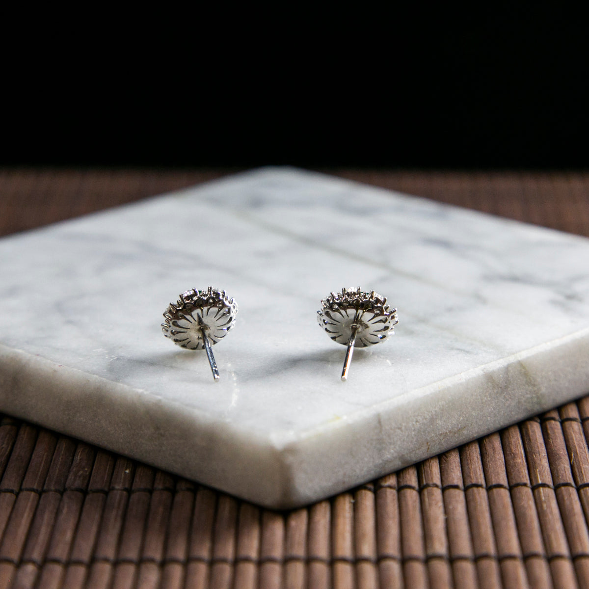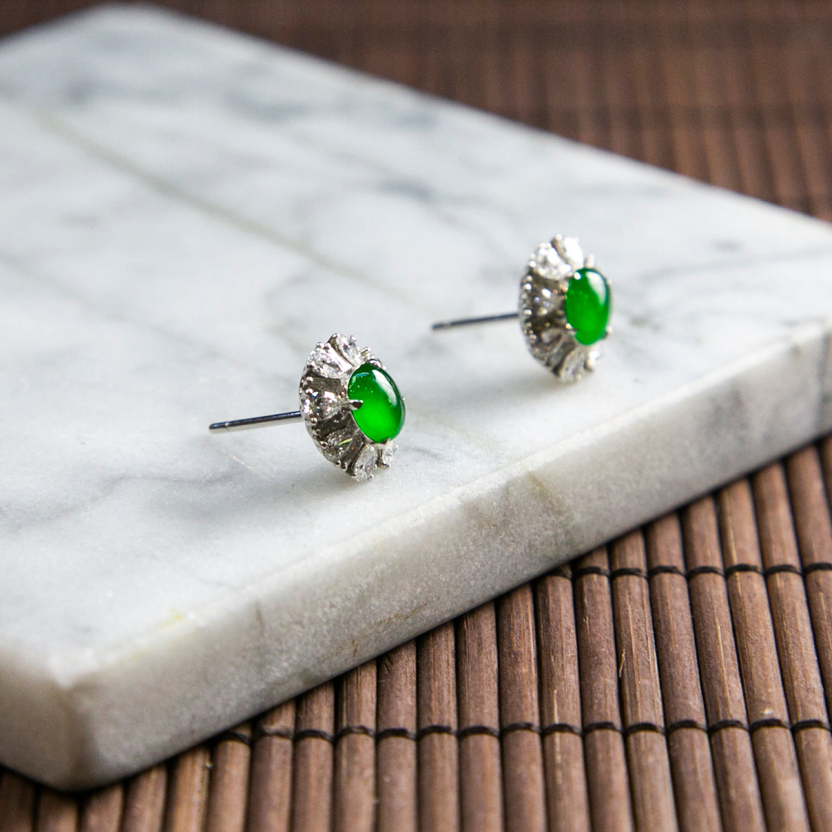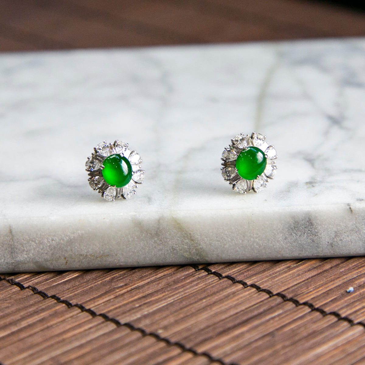 18K Platinum Diamond Natural Burmese Jade Imperial Green Cabochon Ear Studs