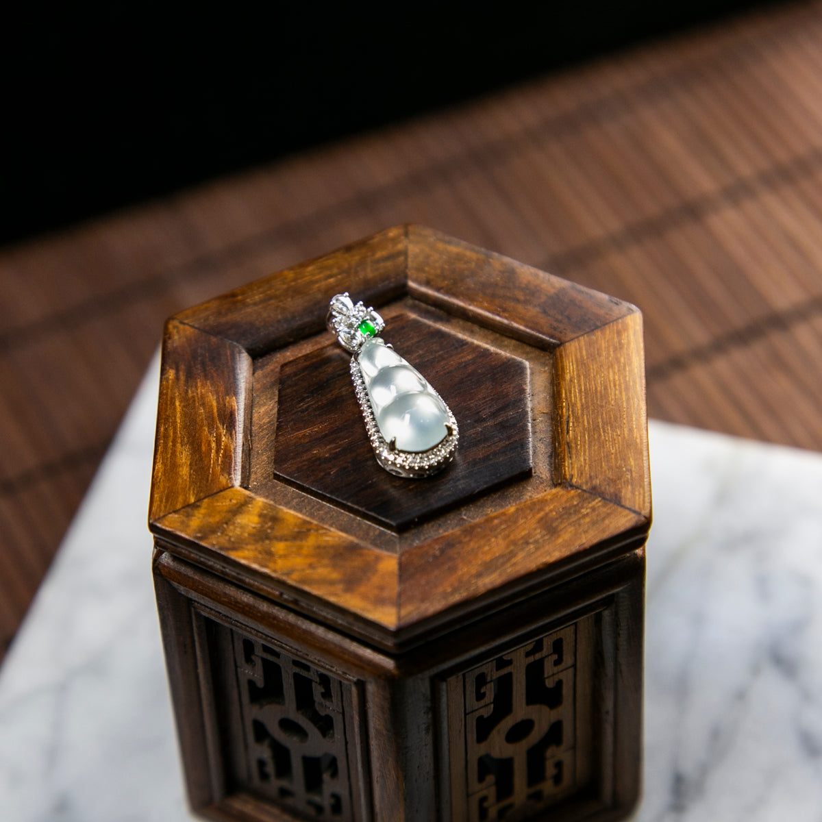 18K Platinum Diamond Natural Burmese Jade Glassy Bean Pendant