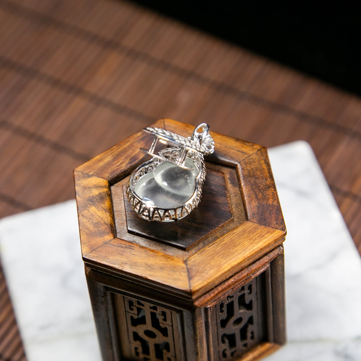18K Platinum Diamond Natural Burmese Jade Glassy Gourd Pendant