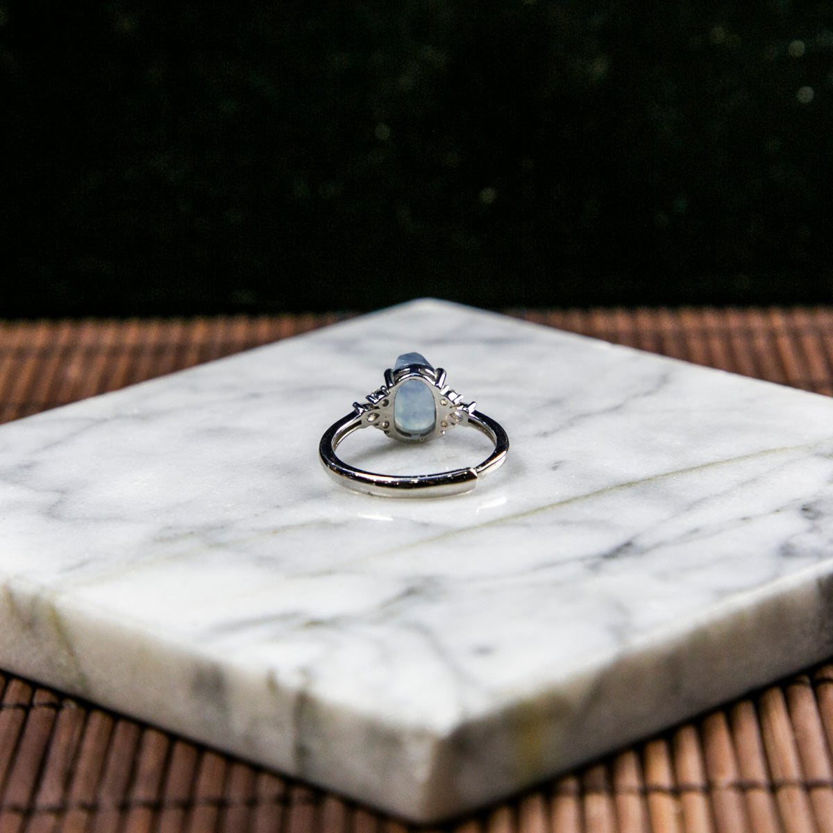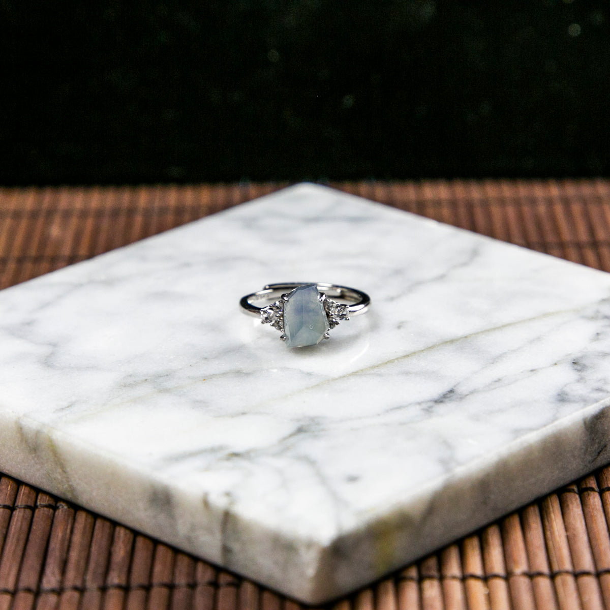 S925 Zircon Natural Burmese Jade Icy White Piao Hua Adjustable Ring