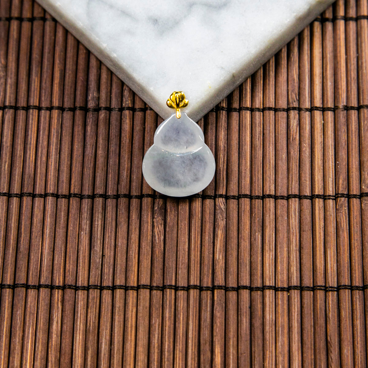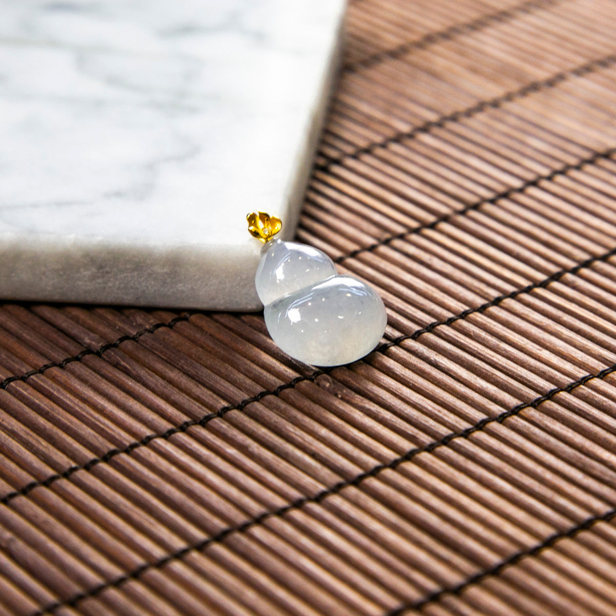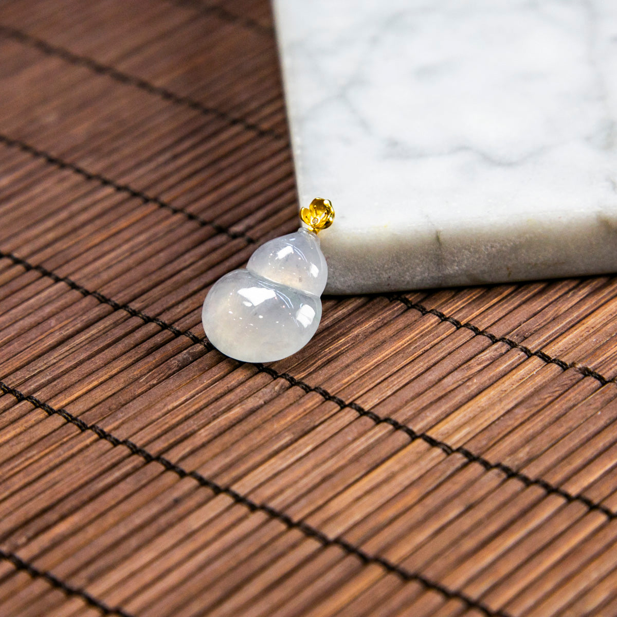 18K Gold Diamond Natural Burmese Jade Icy White Hulu Pendant
