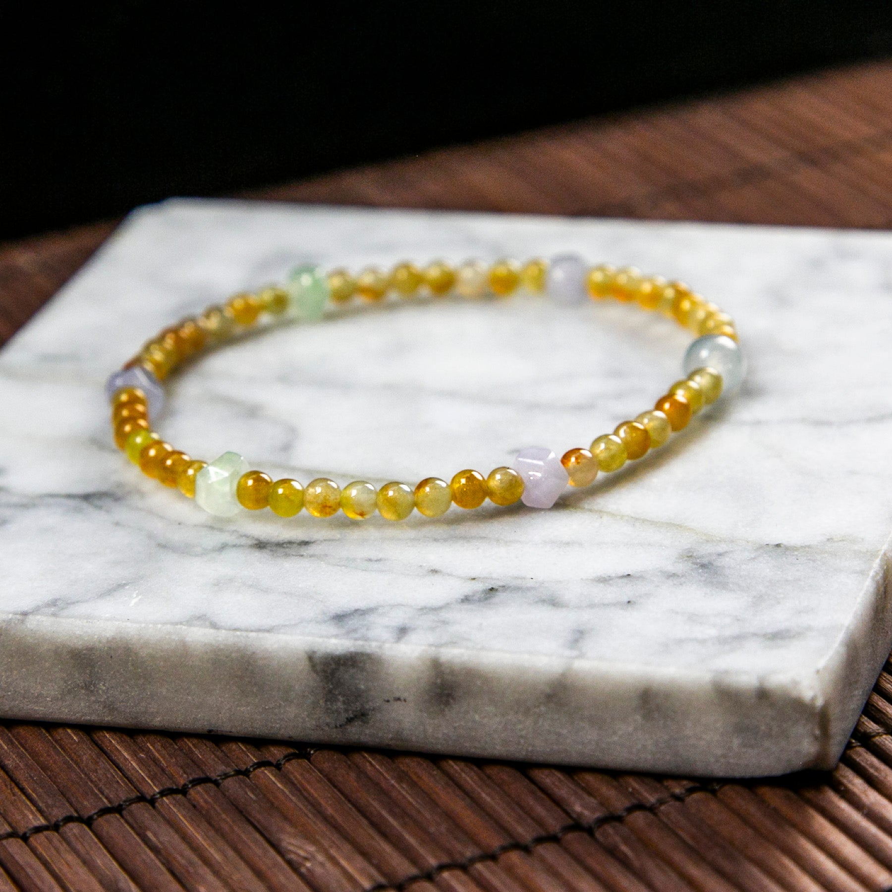 Natural Burmese Jade Icy Yellow Beaded Bracelet with Shaped Beads