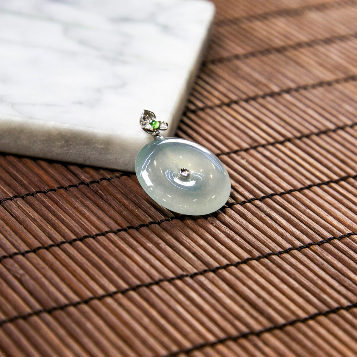 18K Platinum Diamond Natural Burmese Jade Icy Light Blue Ping An Donut Pendant
