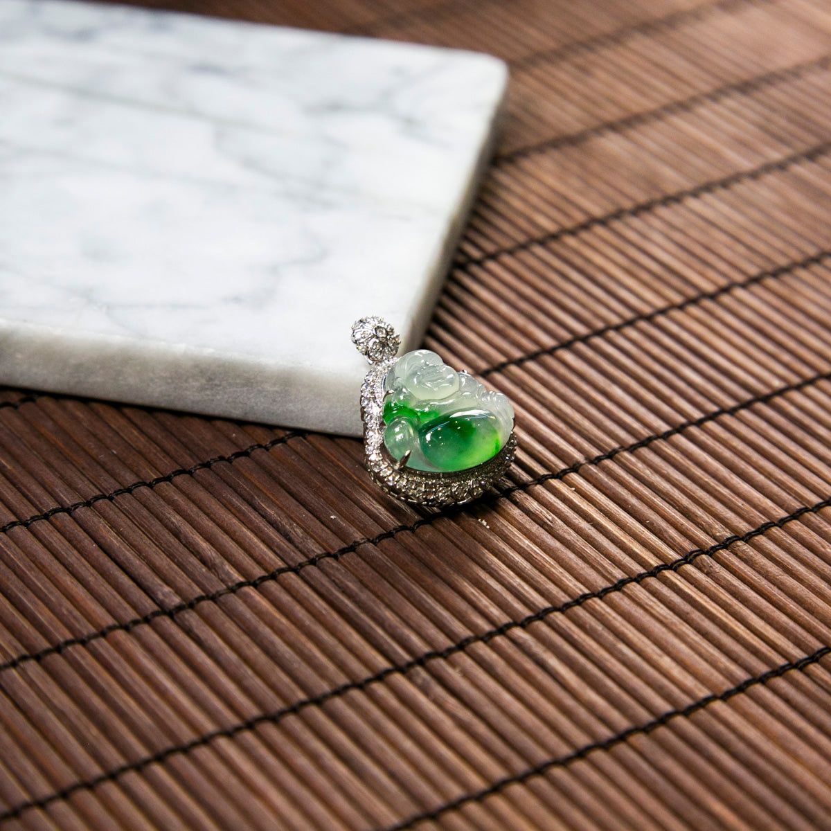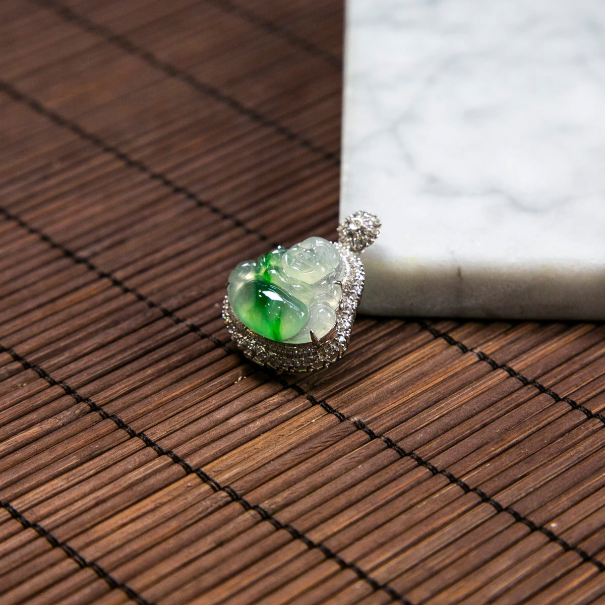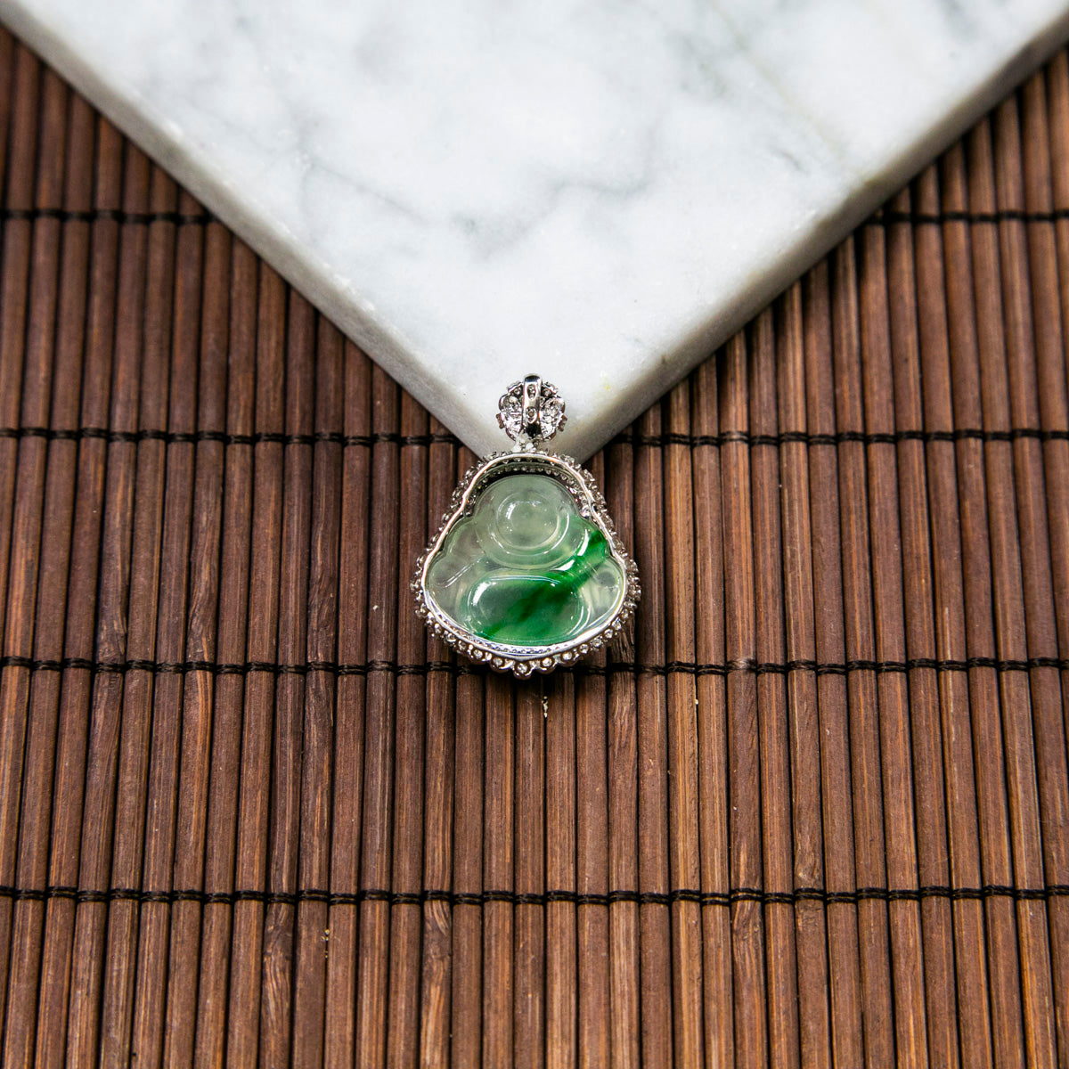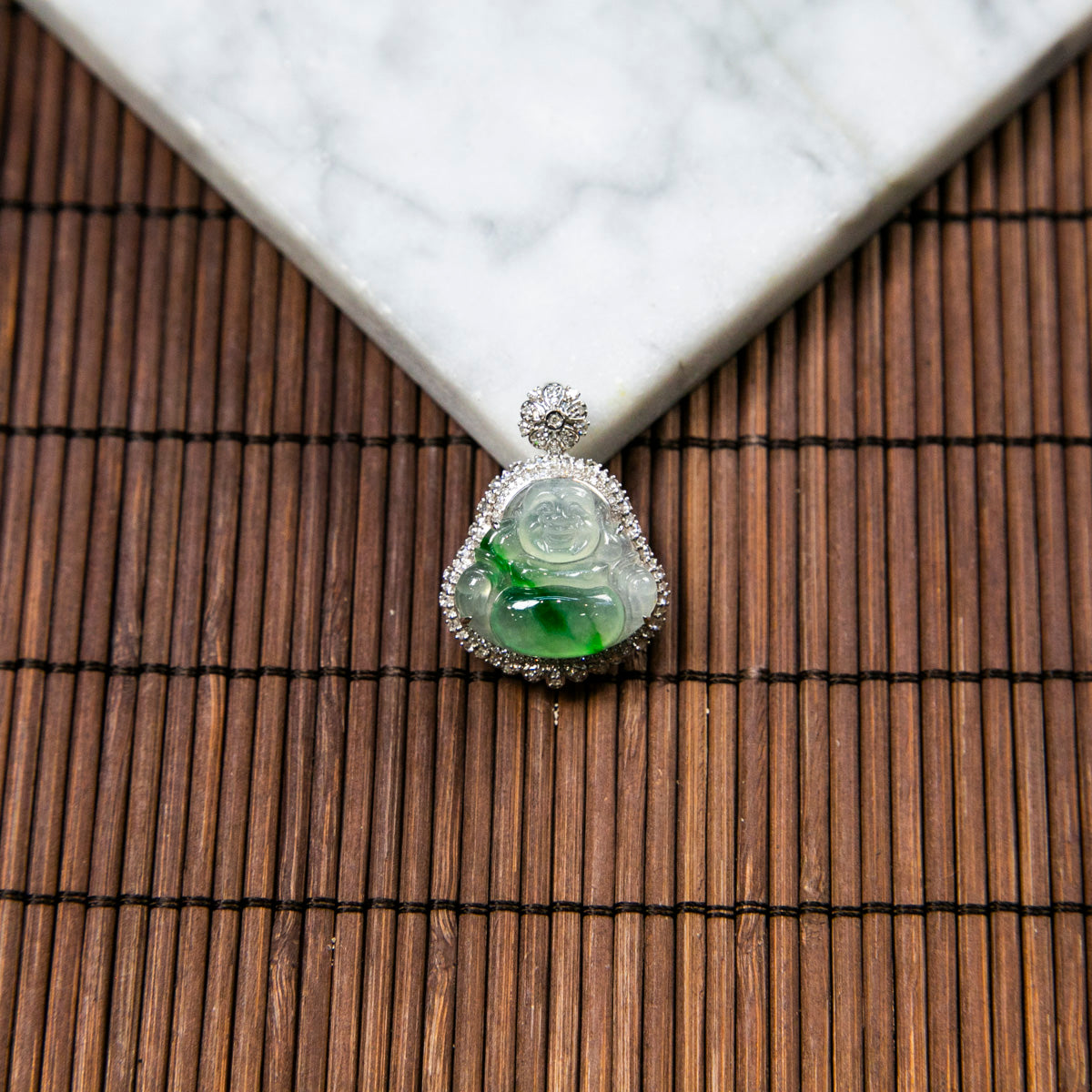 18K Platinum Diamond Natural Burmese Jade Icy White Piao Hua Buddha Pendant
