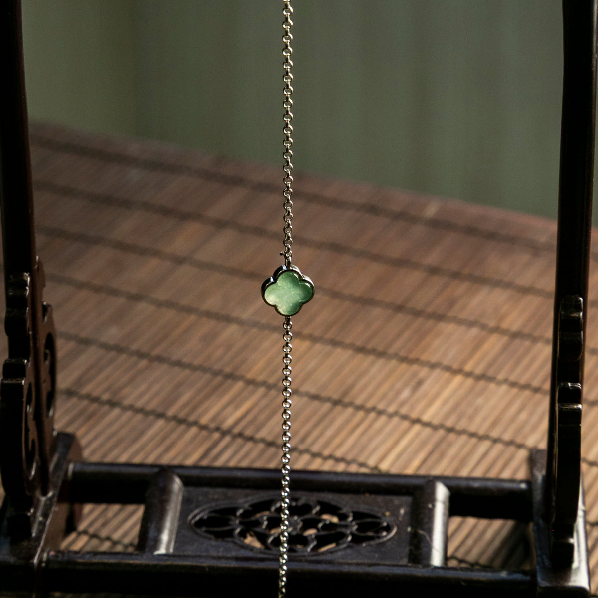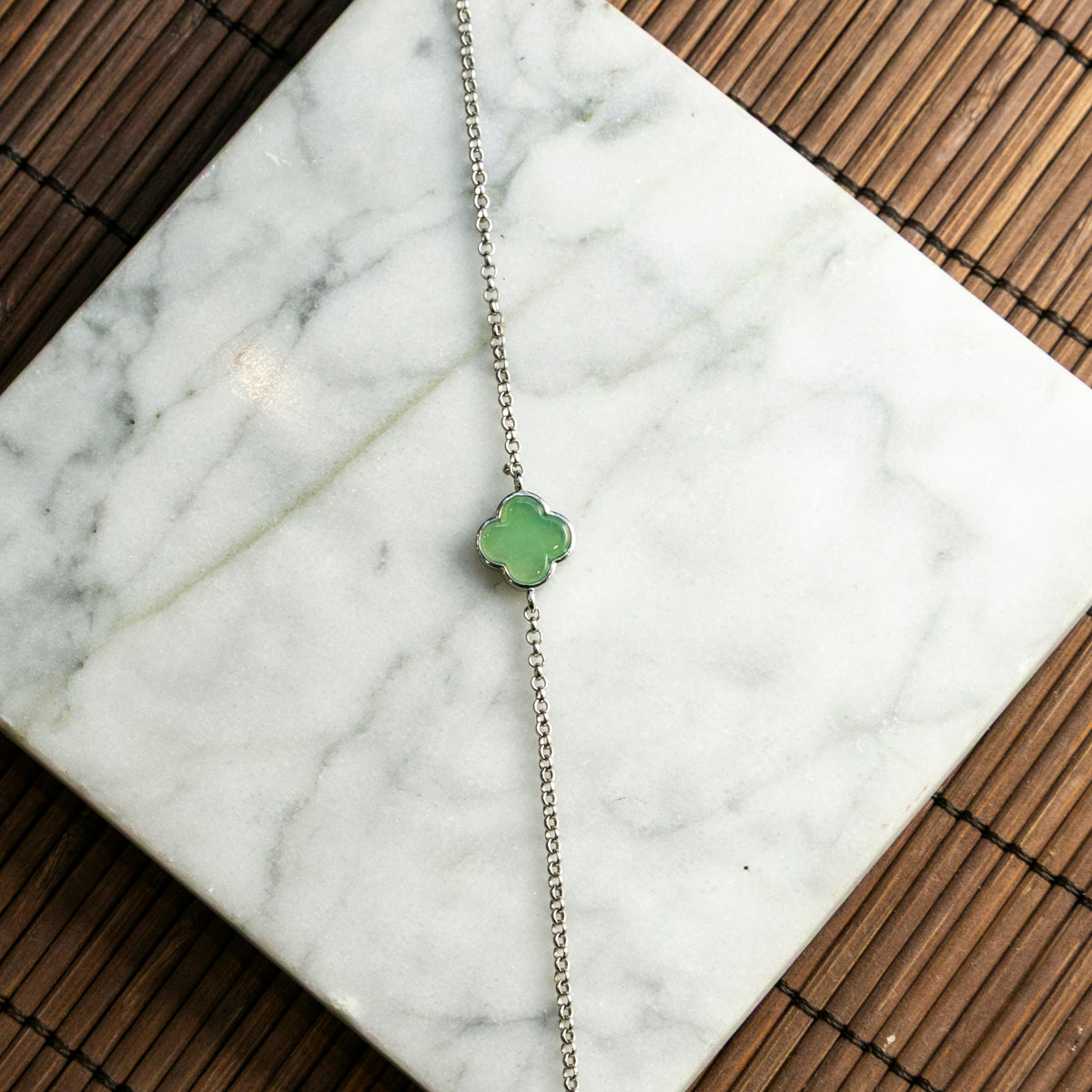 Natural Burmese Jade Bluish Green Clover S925 Silver Bracelet