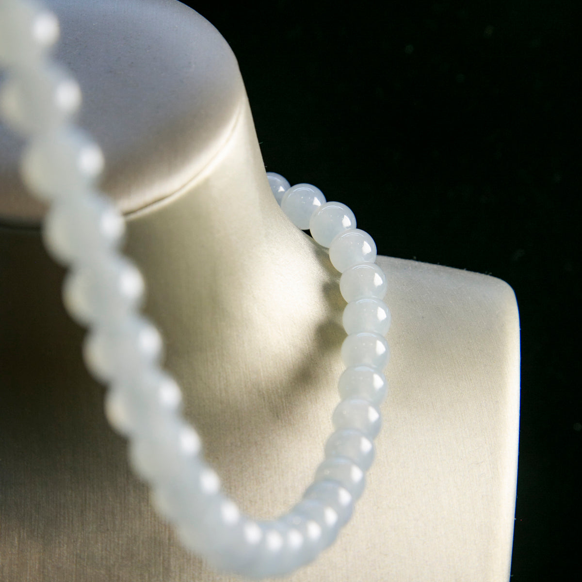 Natural Burmese Jade Icy Blue Beaded Necklace