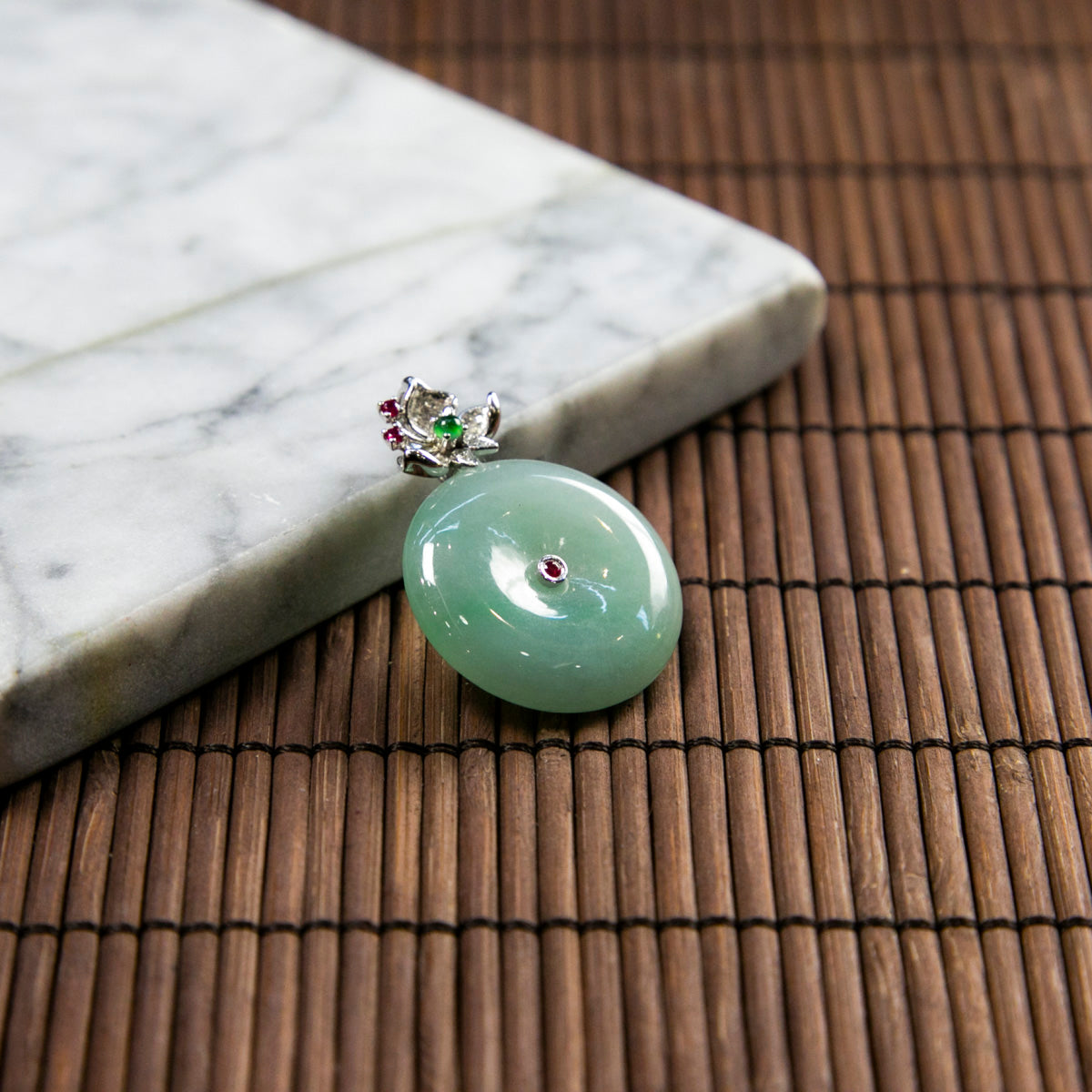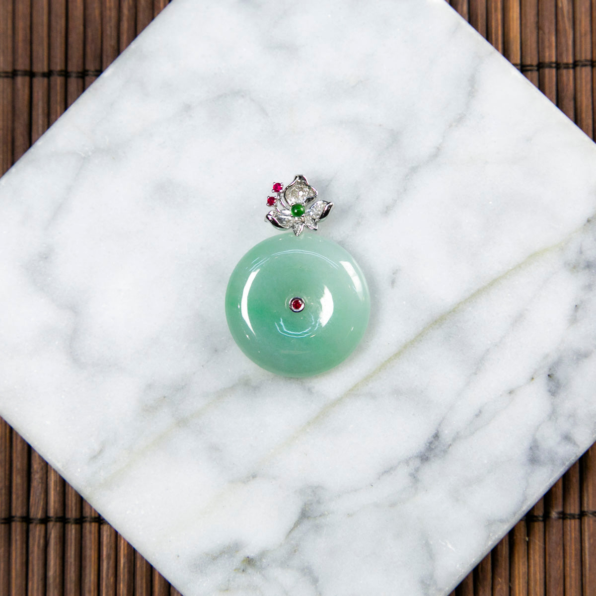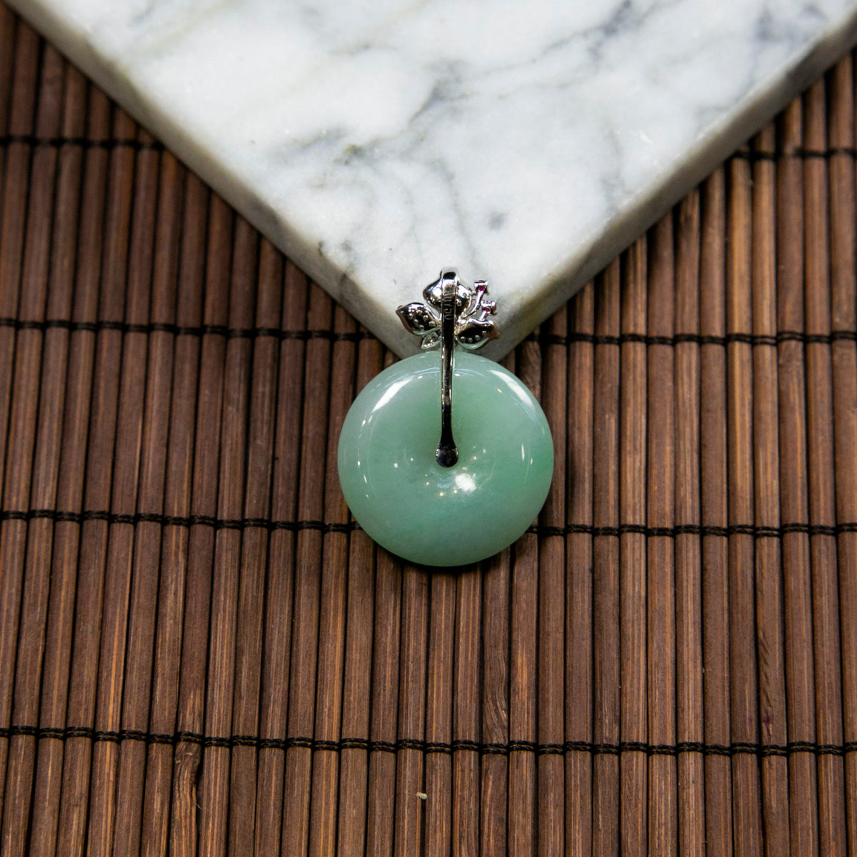 18K Platinum Diamond Natural Burmese Jade Light Green Ping An Donut Pendant