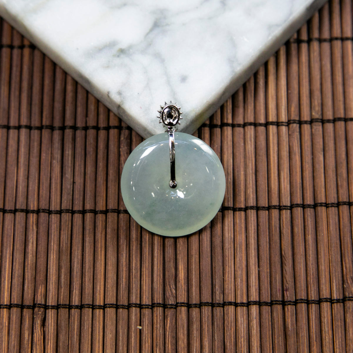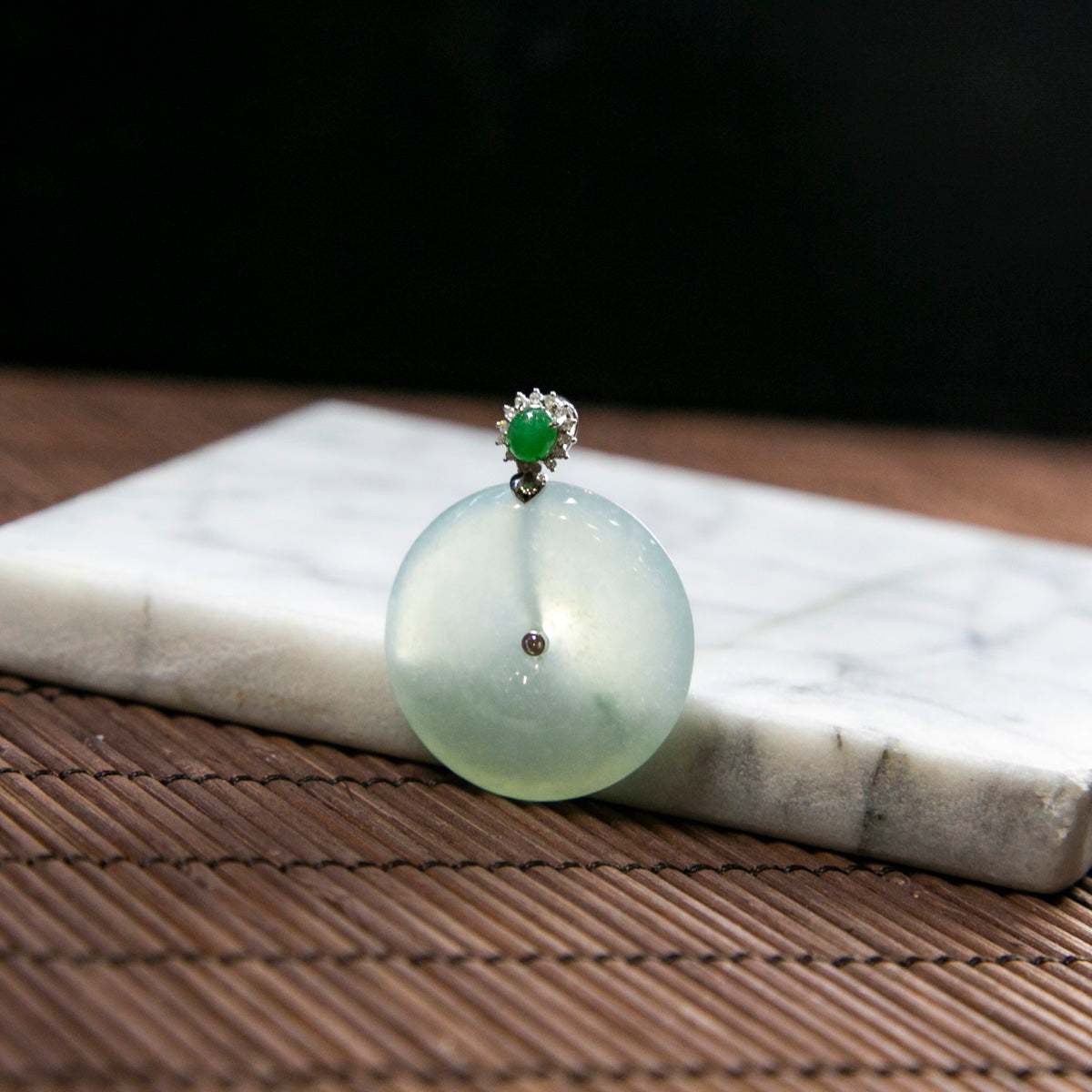 18K Platinum Diamond Natural Burmese Jade Icy Bluish Piao Hua Ping An Donut Pendant