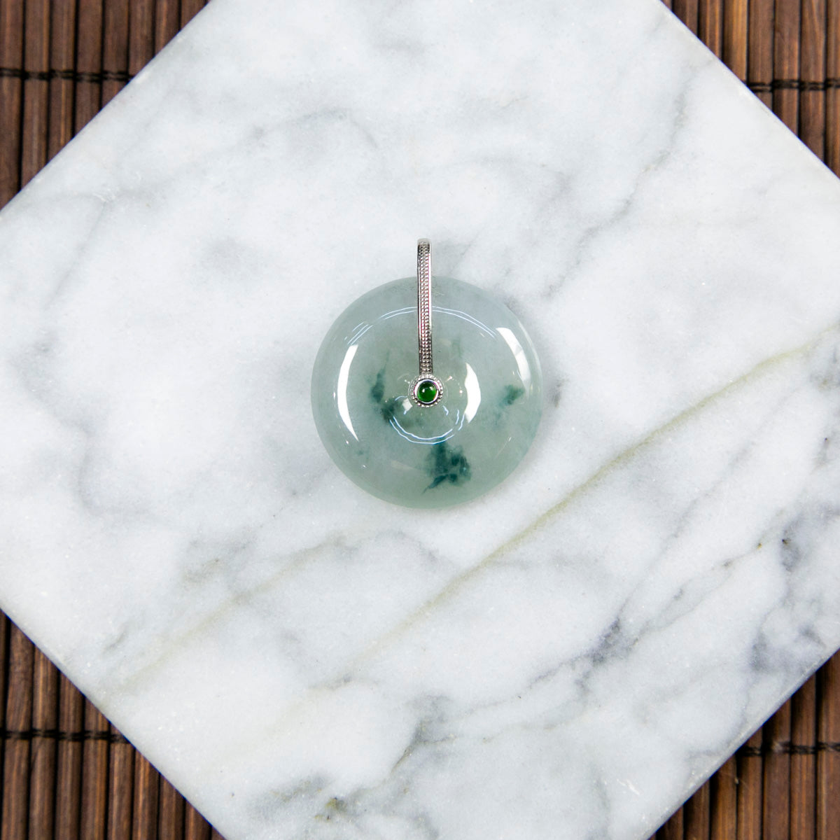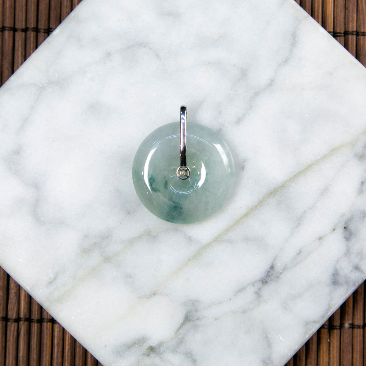 18K Platinum Natural Burmese Jade Icy Bluish Piao Hua Ping An Donut Pendant