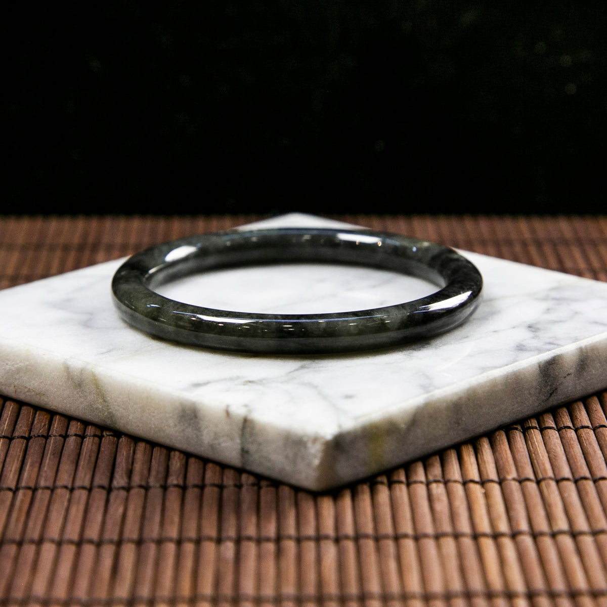 Natural Burmese Jade Full Color Wuji Black Jade Full Circle Bangle (Fits 53-55mm)