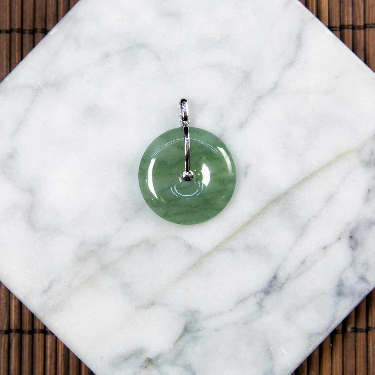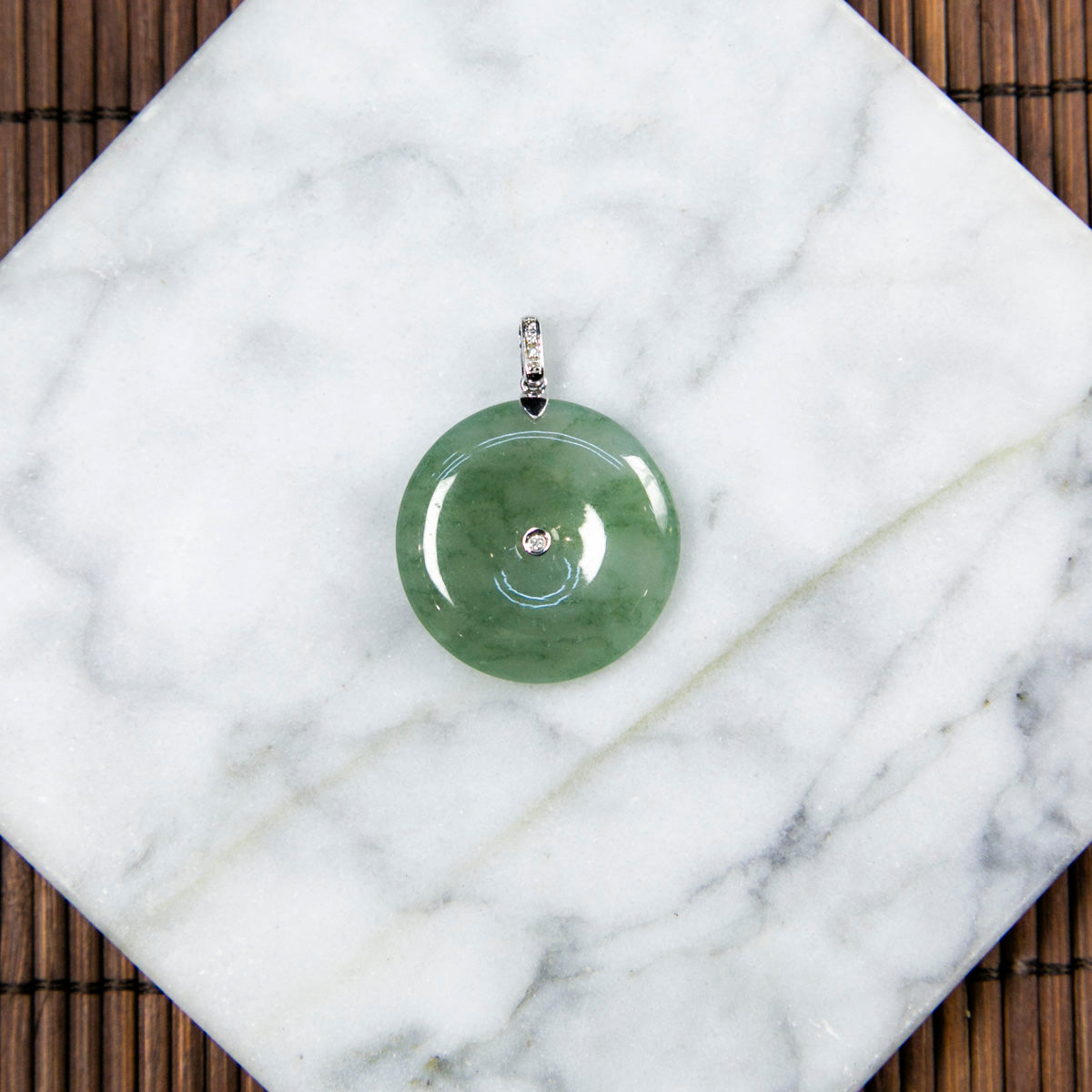 18K Platinum Diamond Natural Burmese Jade Icy Bluish Green Piao Hua Ping An Donut Pendant