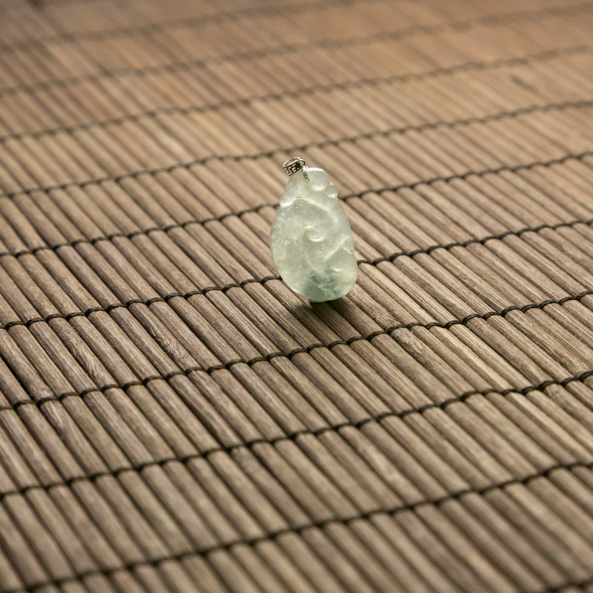 18K Gold Natural Burmese Jade Icy Ruyi Pendant