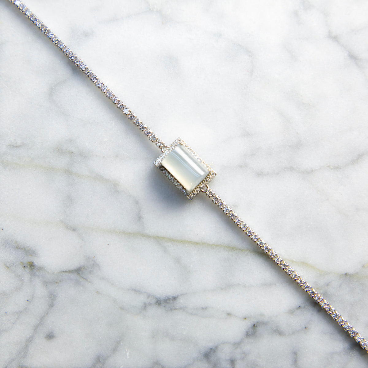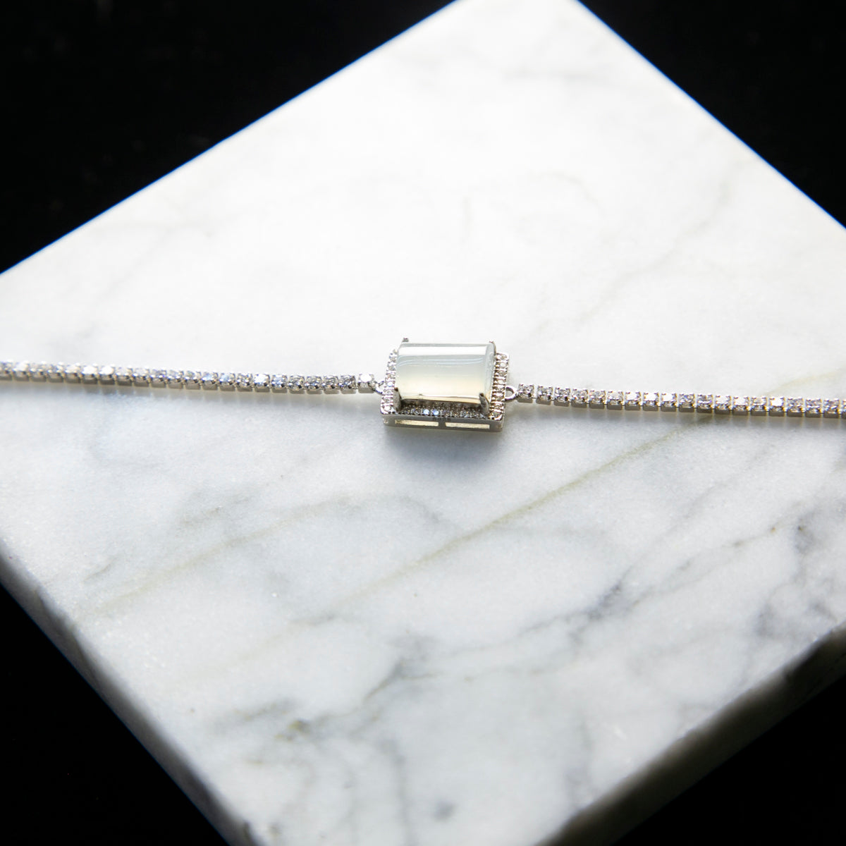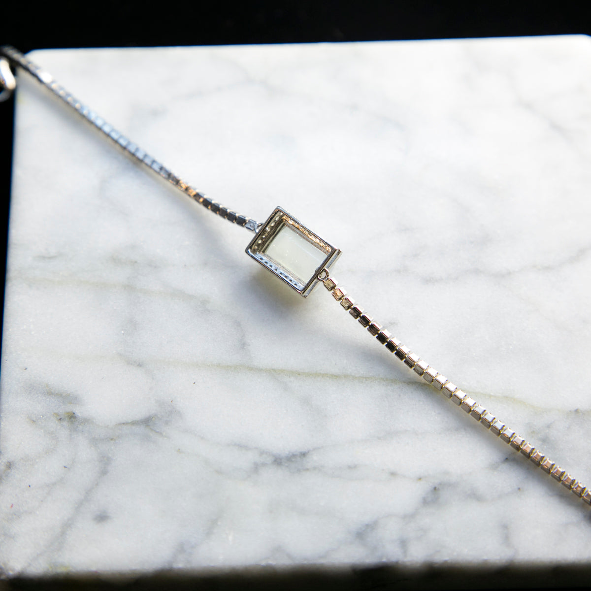 S925 Zircon Natural Burmese Jade Icy White Rectangle Bracelet