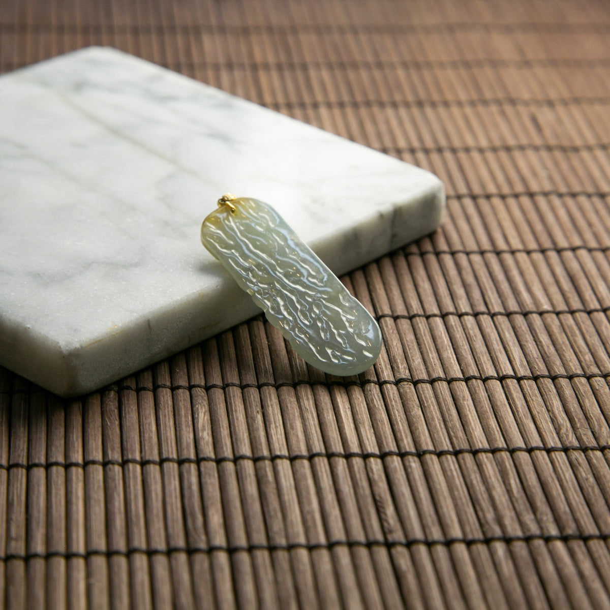 18K Gold Natural Burmese Jade Icy Yellow Ruyi Pendant